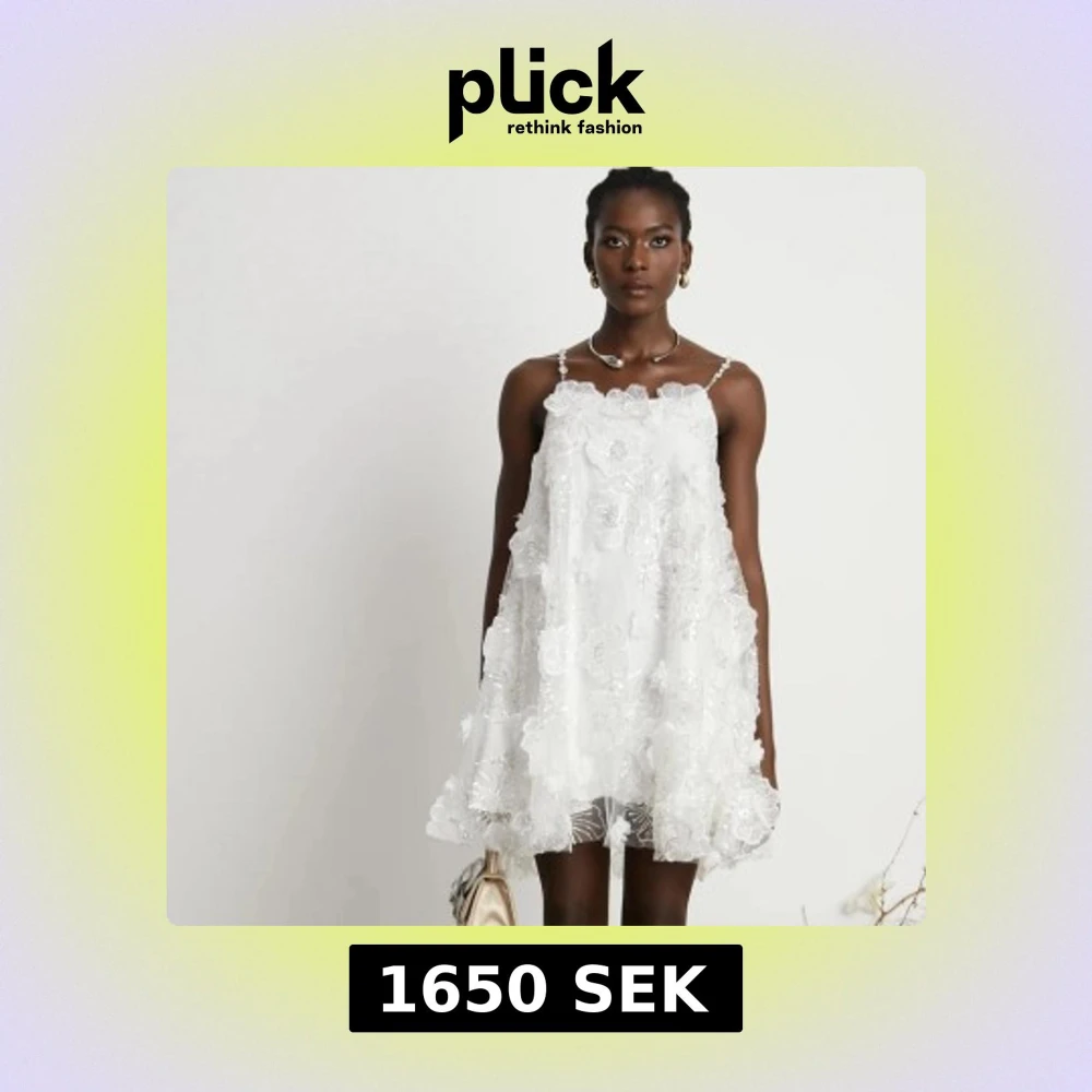 Superfin vit kortklänning med 3D-blommor, pärlprydda axelband och glittriga detaljer. Klänningen är helt ny då jag skulle ha den till min student men den kom aldrig i tid, den är ifrån miss-rosier 💕 passar. S-S