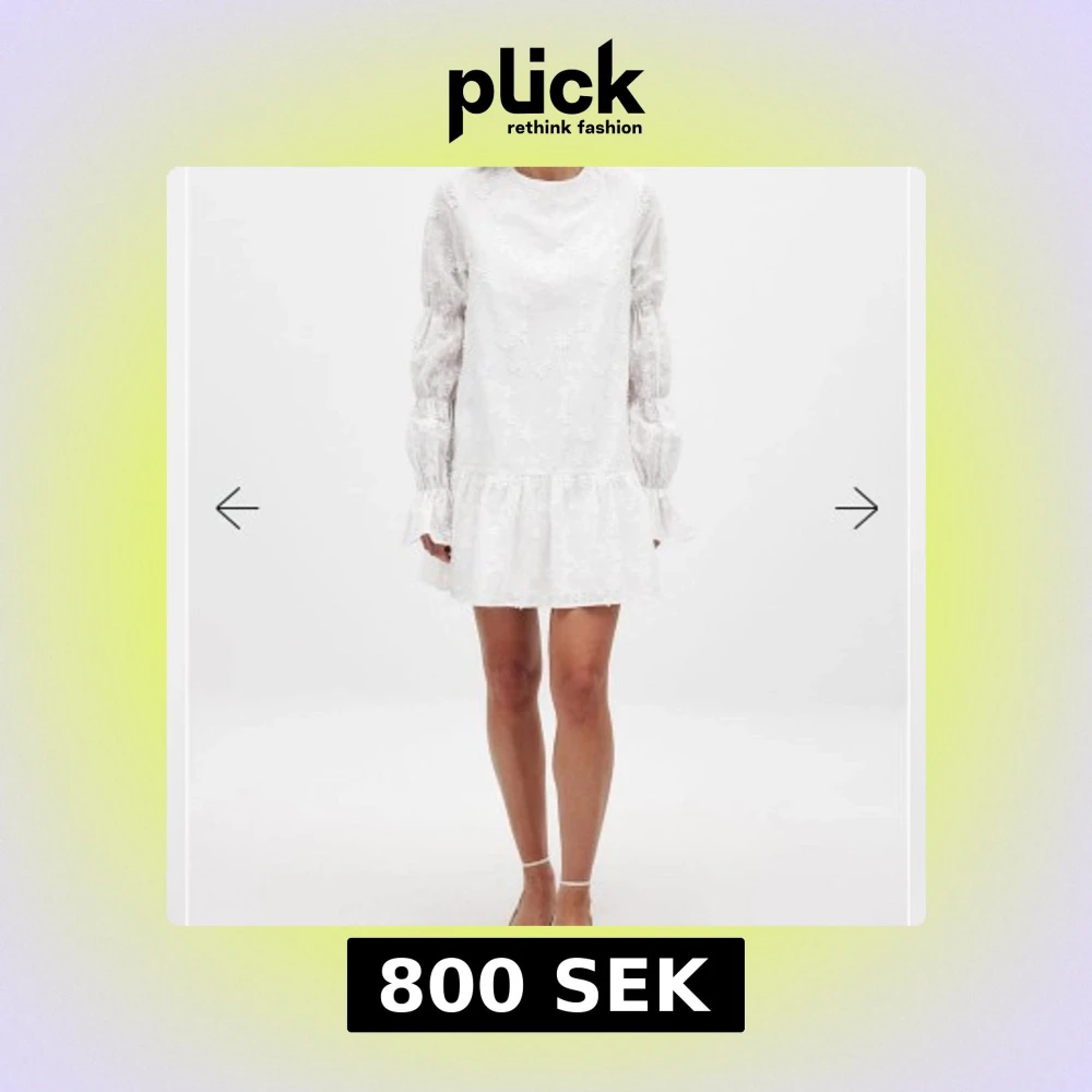 Superfin vit kortklänning med broderade blommor och volang nertill. Klänningen har långa puffärmar, öppen rygg med knyt och en romantisk känsla. Perfekt för sommarens alla tillfällen!