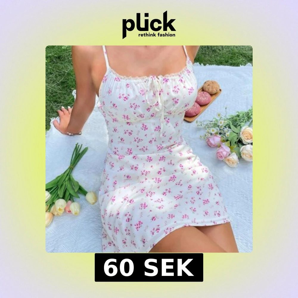 Söt vit kortklänning med små rosa blommor och tunna axelband. Oanvänd