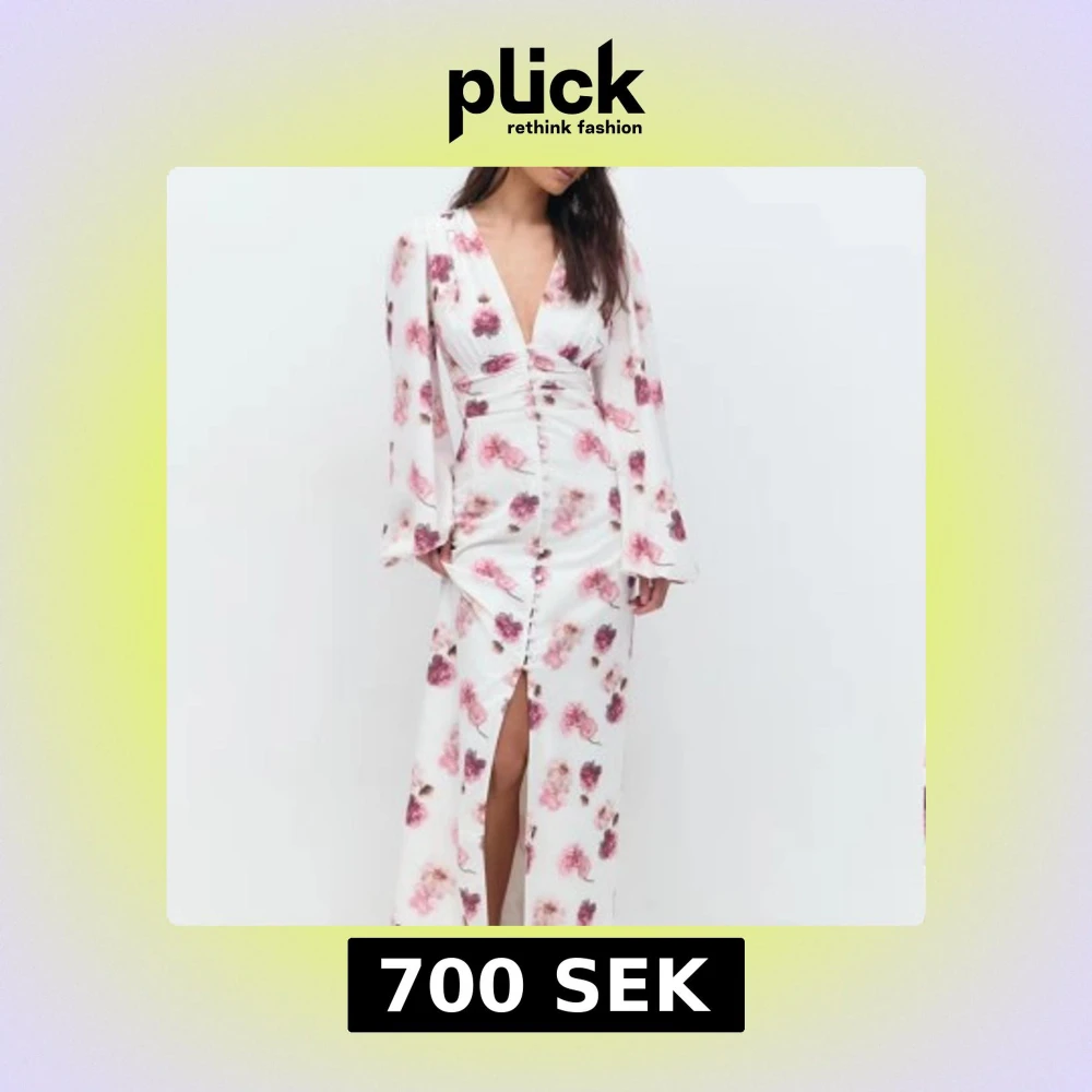 Elegant vit långklänning med blommigt mönster. Klänningen är från Gina Tricot och den är oanvänd med prislappar kvar💕