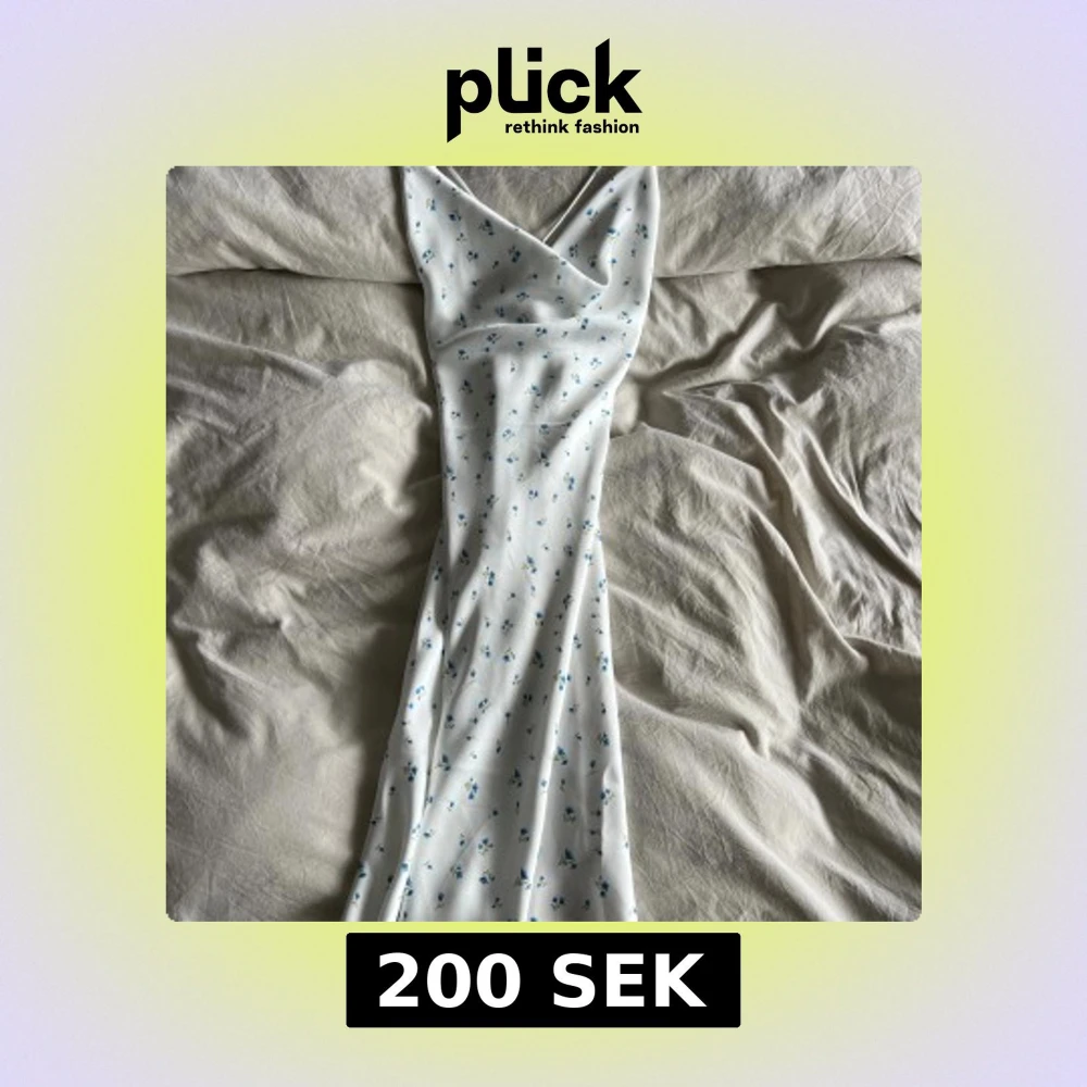 Superfin långklänning i vitt med små blå blommor från NA-KD. Klänningen har draperande ringning, smickrande omlott-detalj och snörning i ryggen. Perfekt för sommarens alla tillfällen och ger en romantisk vibe.