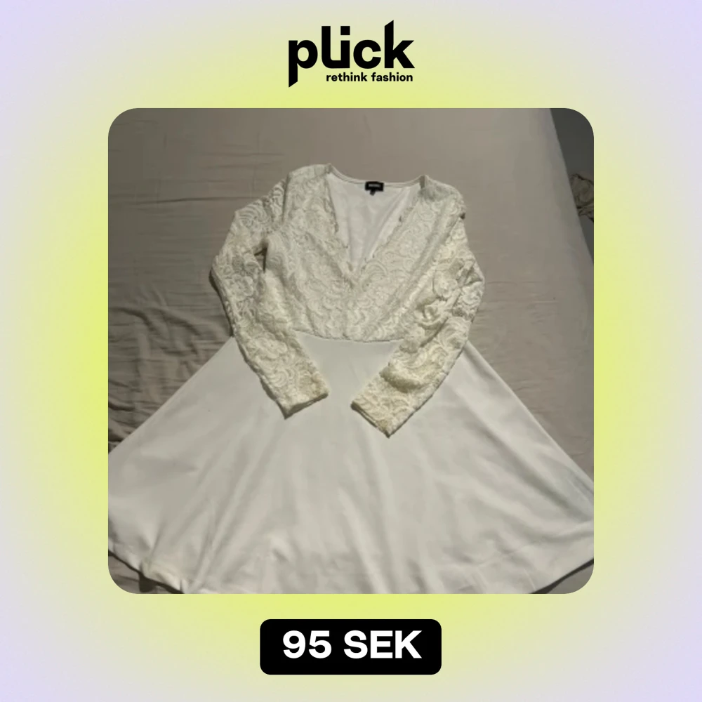Vit klänning med spets Strl. L Använd en gång