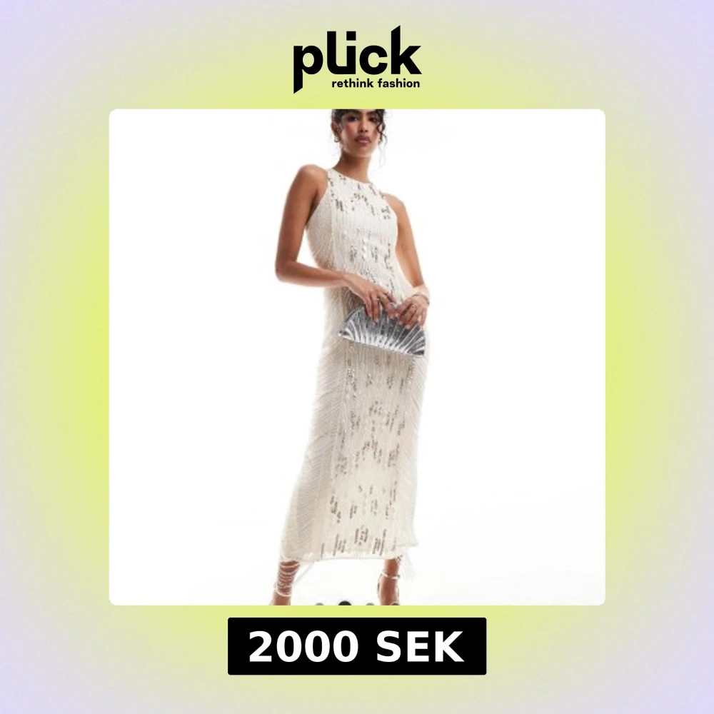 Elegant vit långklänning med glittriga detaljer. Klänningen är ärmlös och har en smickrande passform som framhäver figuren. Perfekt för festliga tillfällen.