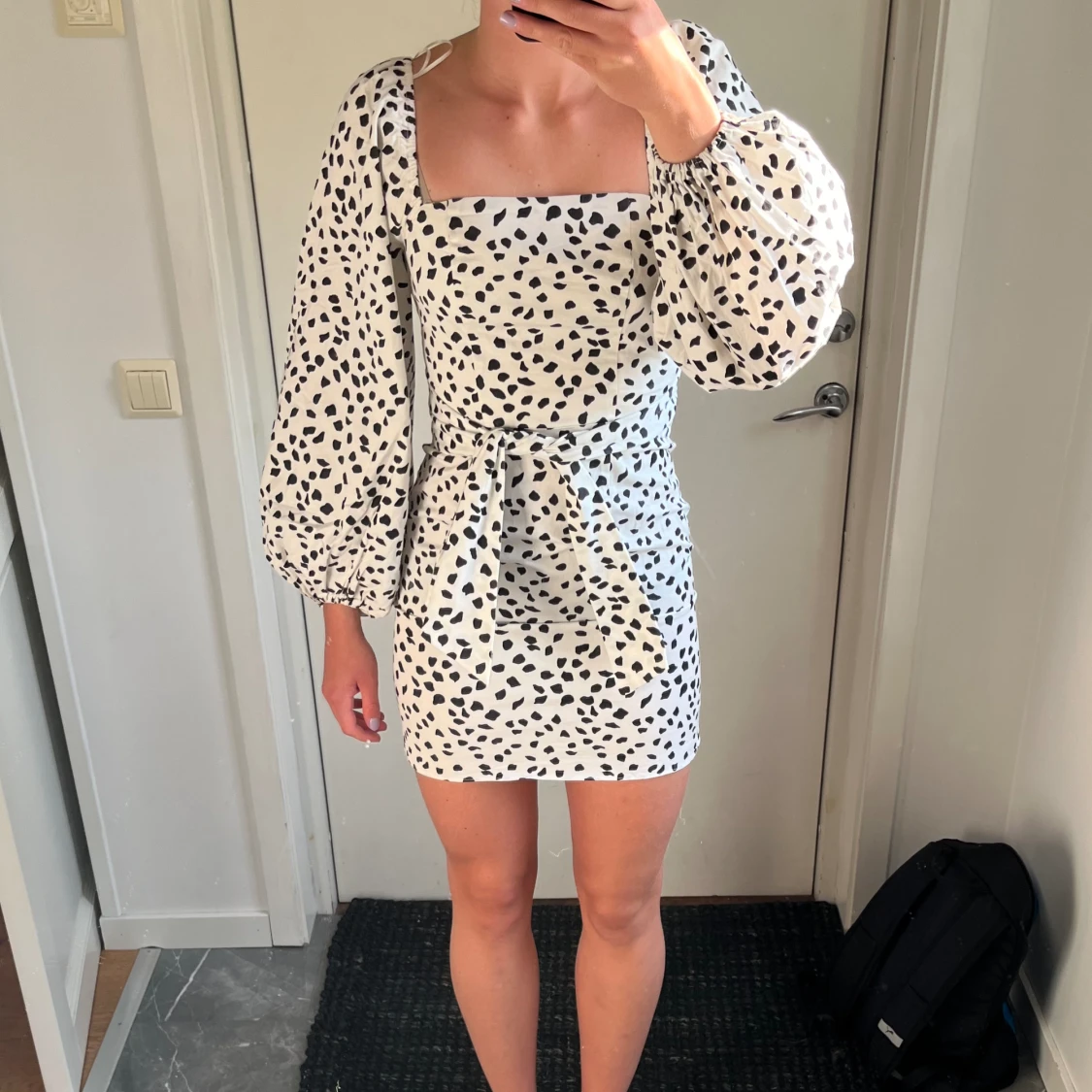 Säljer denna fina vit/svart prickiga klänning från river island i storlek 32 (motsvarar xs). Har endast använt denna klänning en gång💕 Nypris 650 kr.