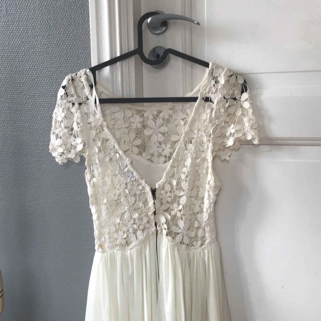 Jättefin vit klänning med spets övertill samt öppen rygg. Använd några få gånger på skolavslutningar.