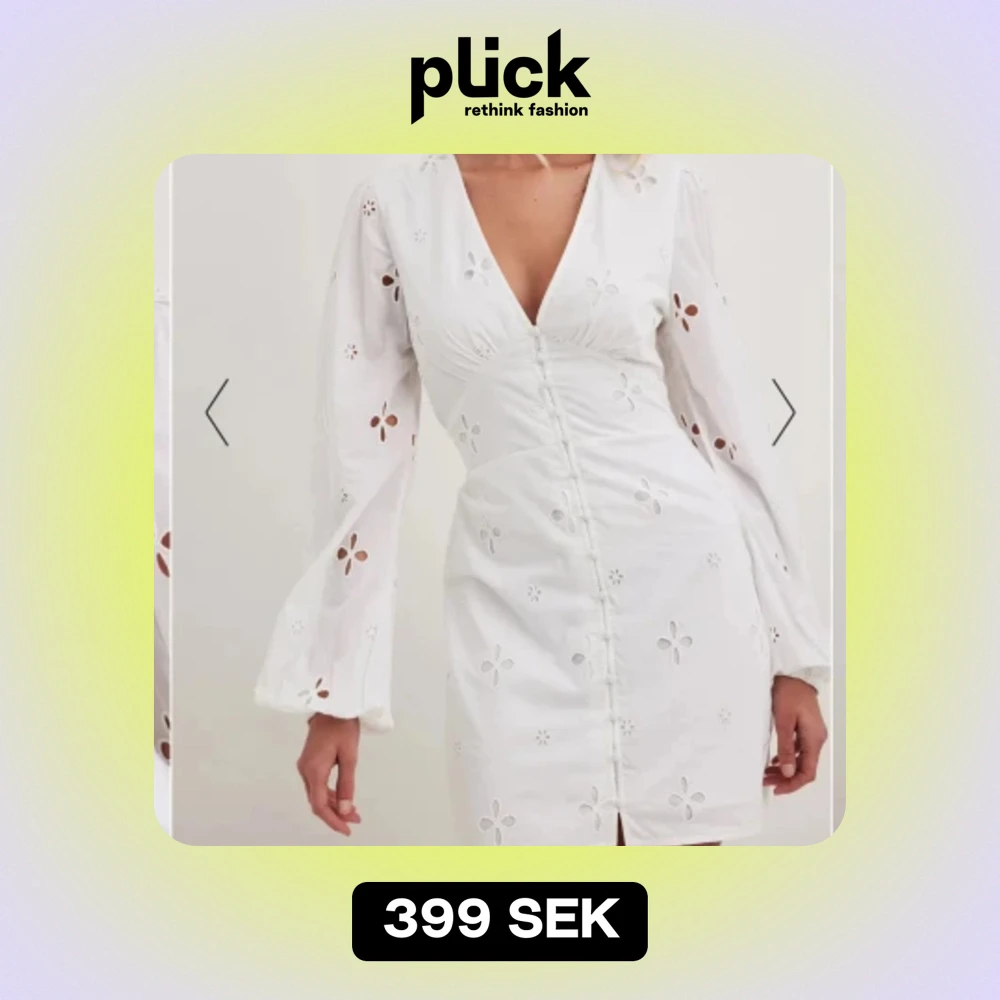 Jag säljer nu min fina vit klänning i bra skick💕endast använd en gång! Klänningen är från NA-KD och är slutsåld på deras hemsida.