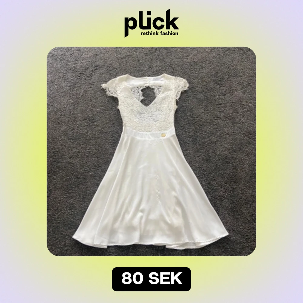 En otroligt fin vit klänning med spets och öppen rygg. Storlek XS men funkar även för S. Perfekt som studentklänning. Inga fläckar.