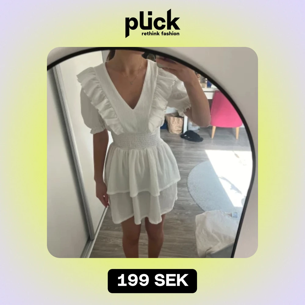 Säljer en superfin klänning från Gina Tricot som är helt slutsåld. Den är endast använd två gånger så den är i ett mycket fint skick! Den har dock en pytte liten fläck uppe vid högra axeln (se sista bilden), men absolut ingenting man tänker på!