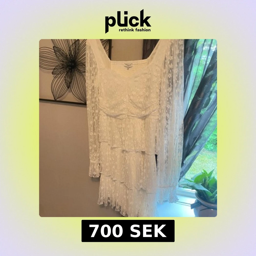 Superfin vit klänning med lite spets volanger. Använd endast en gång! Inga skador/fläckar!💓nypris 900kr