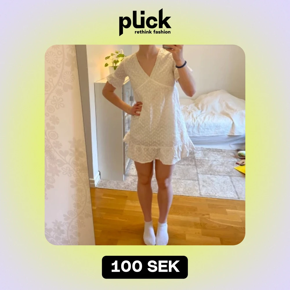 Supersöt vit klänning som tyvärr är för liten för mig. Den är i storlek S, men är liten i storleken 🌟Passar perfekt till studenten, skolavslutning eller till sommaren! 🌸