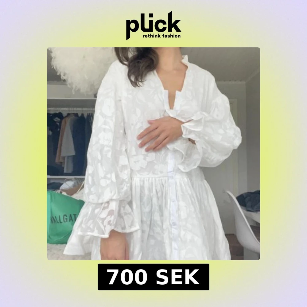 Vit klänning. Perfekt till studenten! Köpte på Plick men kom inte till användning. (De två första bilderna är från hon jag köpte den av)