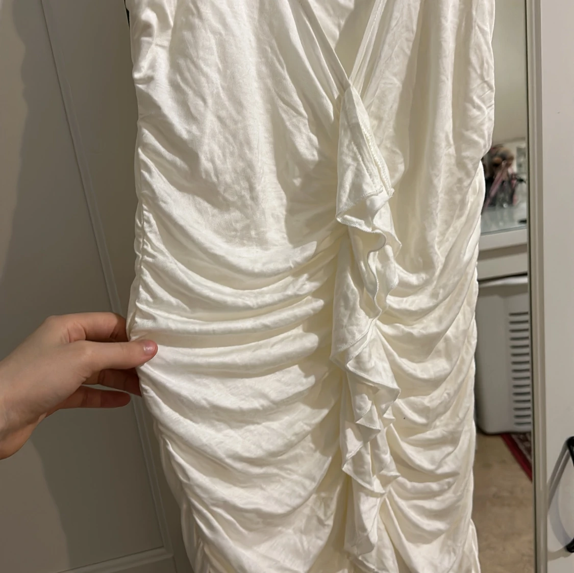 Den är väldigt kort därför rekommenderar jag den till tjejer som är korta o smala. Inga defekter alls.