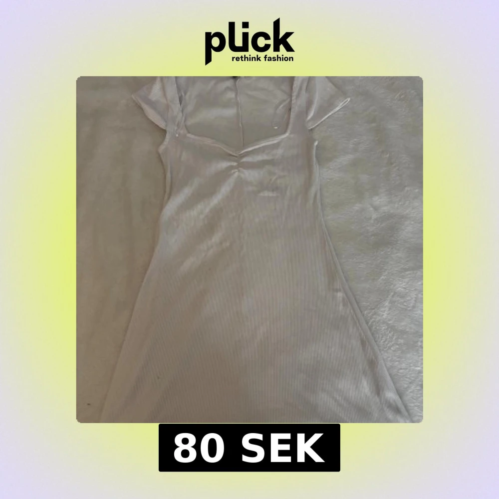 Supersöt vit kortklänning med ribbad struktur och v-ringad hals. Klänningen har korta ärmar och en lätt figurnära passform som ger en snygg siluett. Perfekt för dig som gillar stilrena och enkla plagg med en feminin touch.