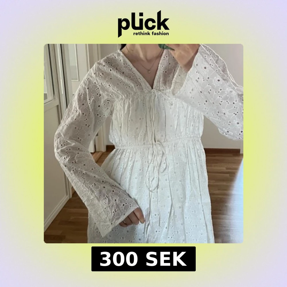 Söt vit klänning från NA-KD med broderade detaljer och knytdetalj framtill. Perfekt för studentklänning eller till sommaren. Den är helt ny med prislappen och aldrig använt. Ordpris 599kr. För mer frågor och bilder kontakta mig💕