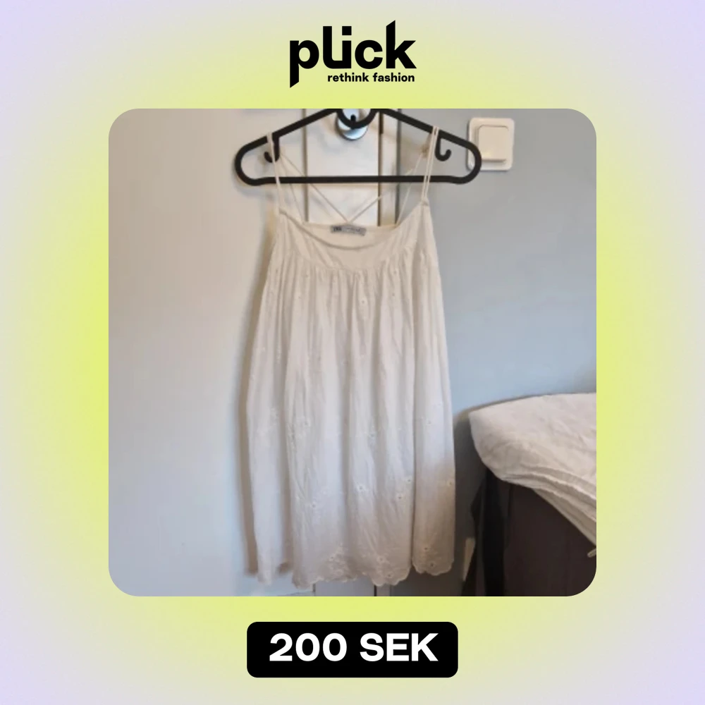 En kort vit sommarklänning som bara är använd en gång. Har också inbyggda shorts under klänningen.