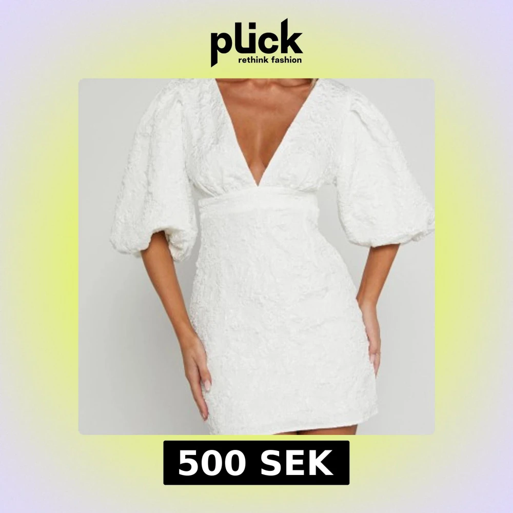 Säljer en elegant vit klänning från Showpo med puffiga trekvartsärmar och en v-ringad design. Prislapp kvar och är aldrig använd då den beställdes inför studenten men använde en annan. Köpt för ca 1200kr med frakt osv från Australien.