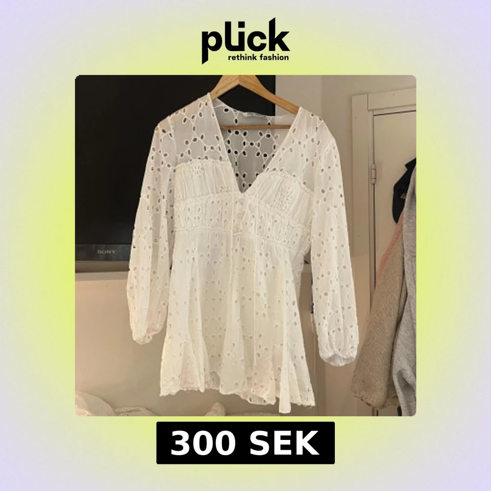 Säljer en vit klänning från Zara med v-ringning och broderade detaljer. Perfekt till studenten eller andra somriga tillfällen. Klänningen är köpt på Vinted men i bra skick!