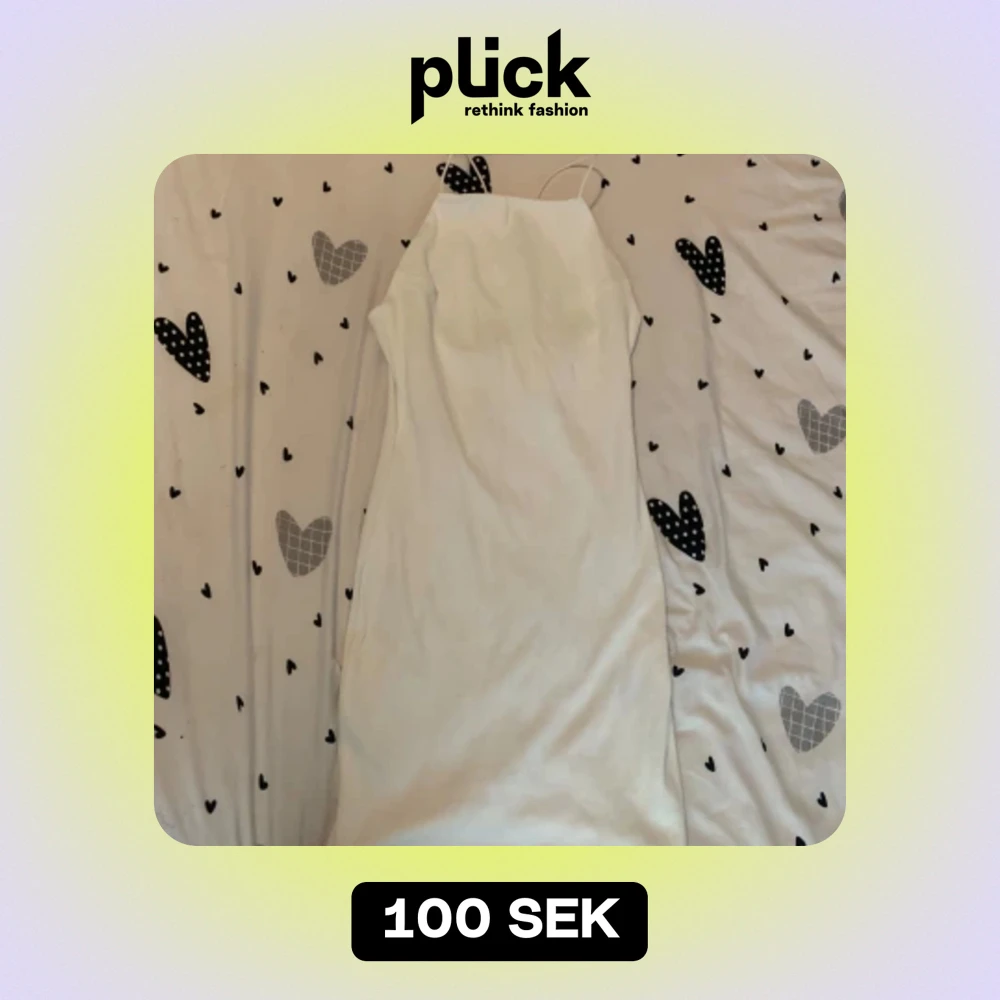 Vit klänning från HM i storlek S. Lite öppen i ryggen som visat i bilden. ALDRIG ANVÄNT!