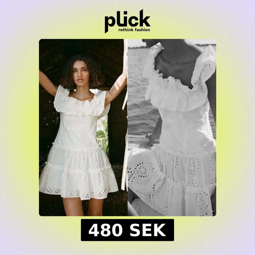Populär klänning från Zara med volang och broderade detaljer (finns ej att köpa längre). Passar till både studenten och midsommarfirande, eller varför inte bara som en söt sommarklänning? 🥰 Passar strl S-M (jag är S). Storlek M i lappen.