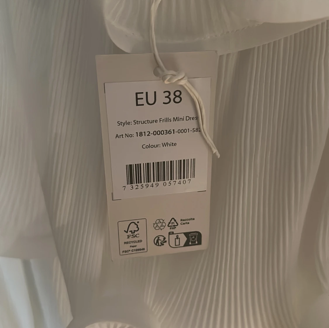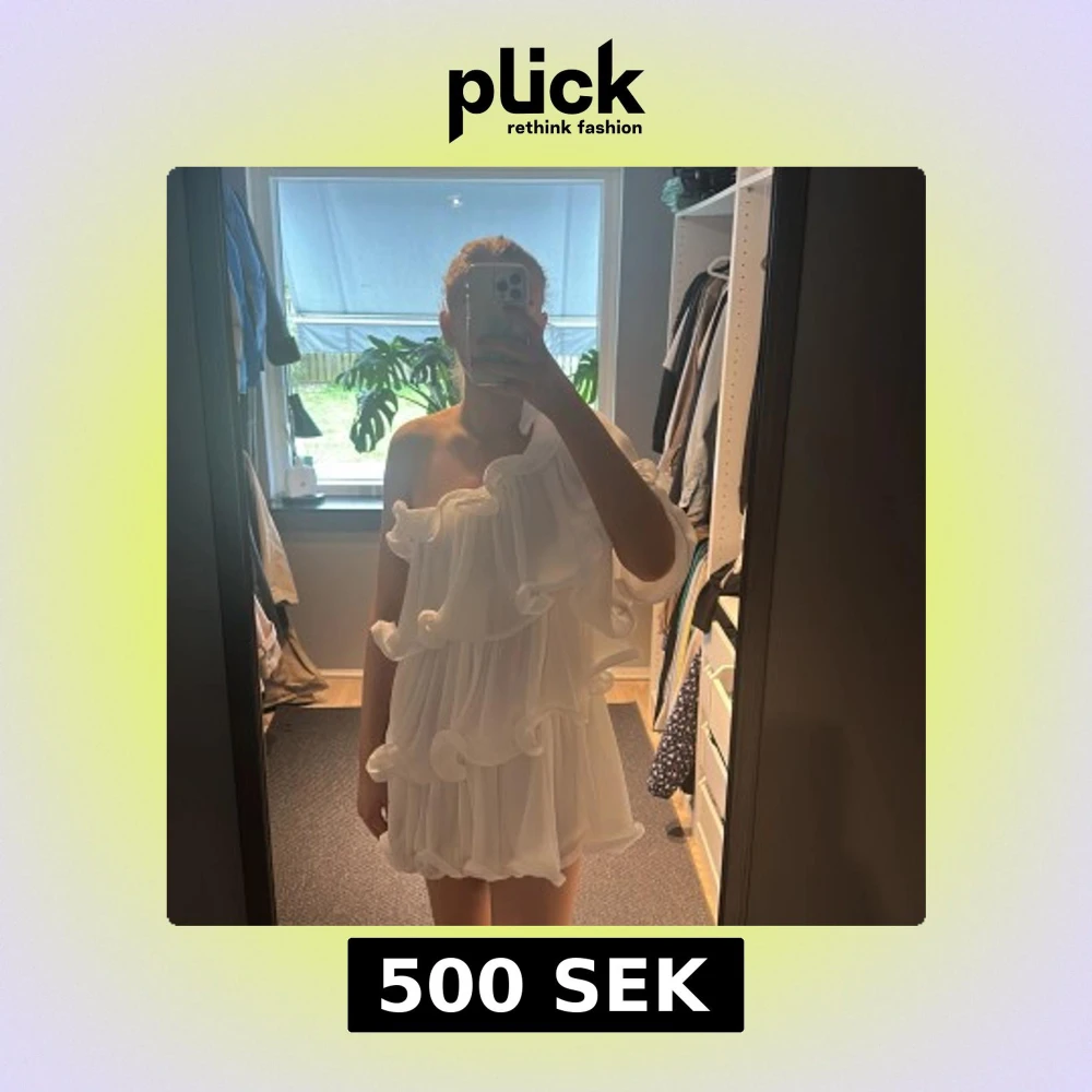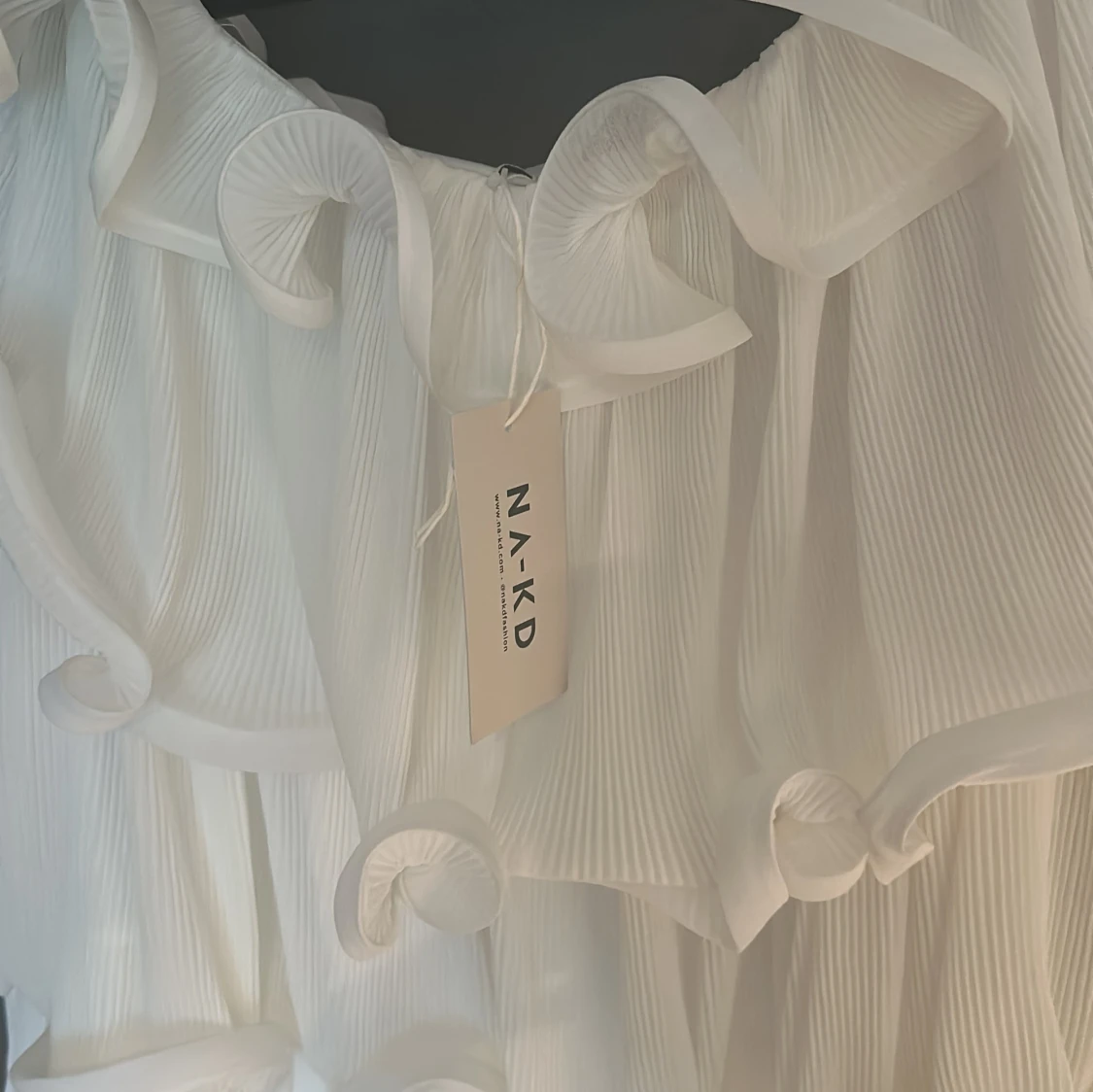 Säljer en superfin vit klänning från NA-KD med volanger. Den är axelbandslös och har en luftig design som ger en romantisk känsla. Perfekt för sommarens alla tillfällen. 💫