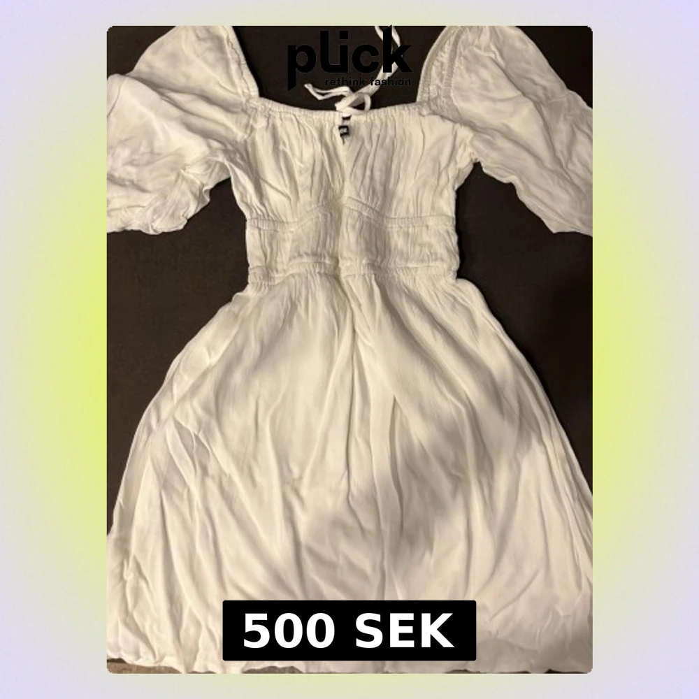 Säljer en vit klänning från BikBok i storlek XS. Klänningen har puffiga ärmar, smockad överdel och knytband vid halsen. Materialet är lätt och flowy, perfekt för en somrig look. Passar dig som gillar romantiska och trendiga klänningar.