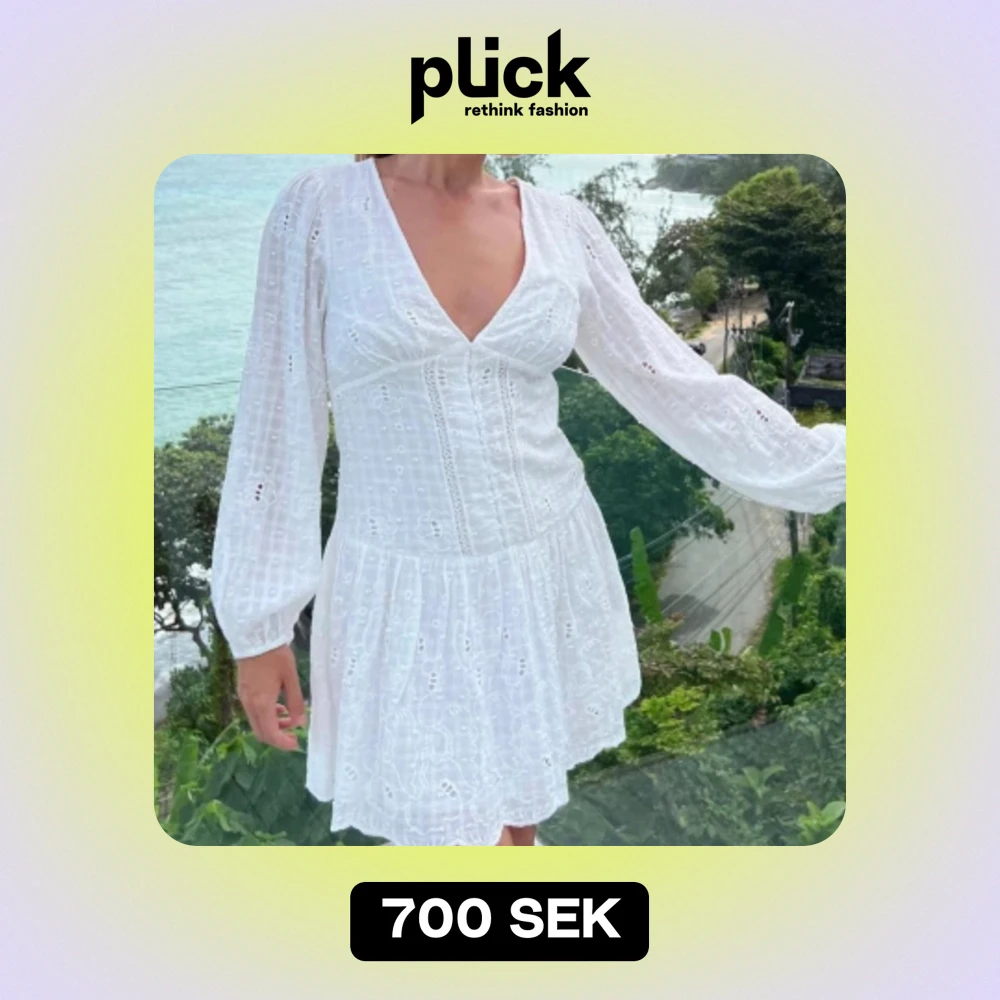 Så fin vit klänning som bara används en gång! Man kan välja hur man vill ha armarna långa eller korta! Nyskick, inga defekter! Så fin somrig klänning!