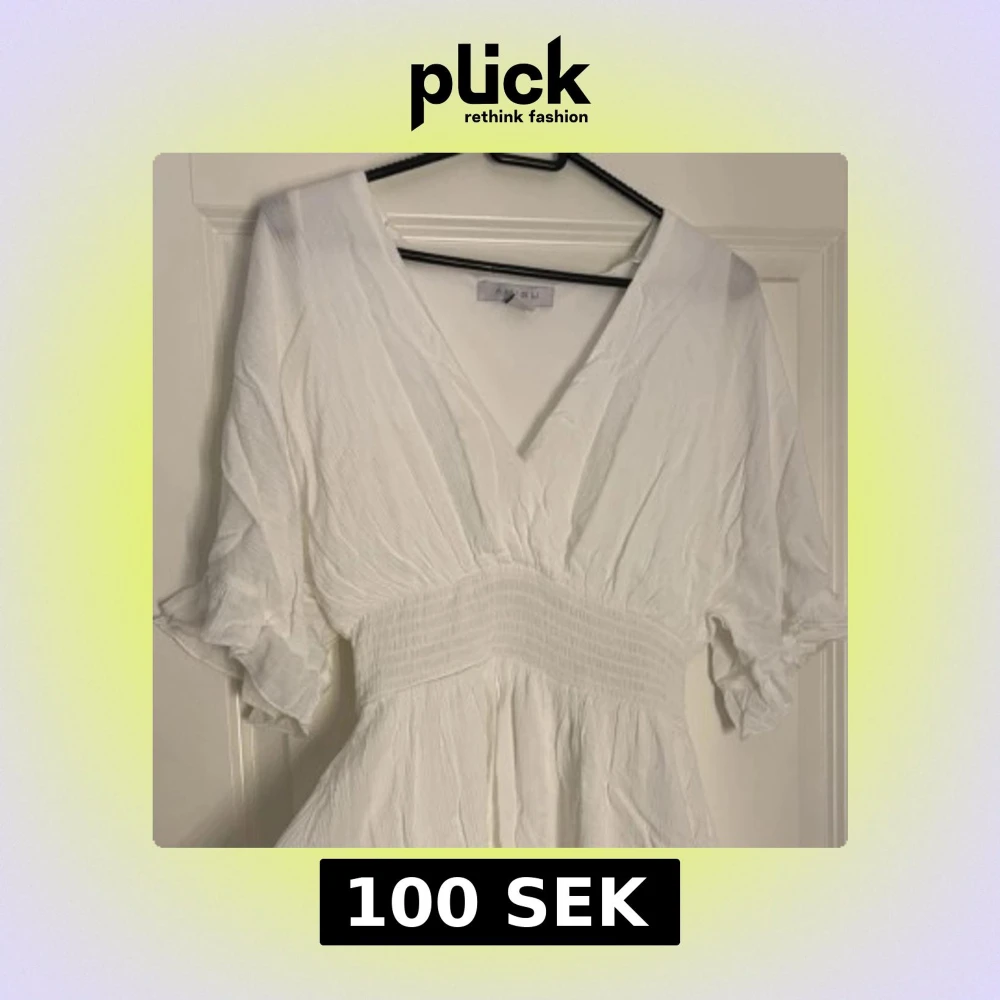 Säljer en vit klänning från amisu. Klänningen har korta, volangprydda ärmar och markerad midja med smock. Perfekt för sommarens alla tillfällen men även skolavslutning!💞💞(aldrig använd)