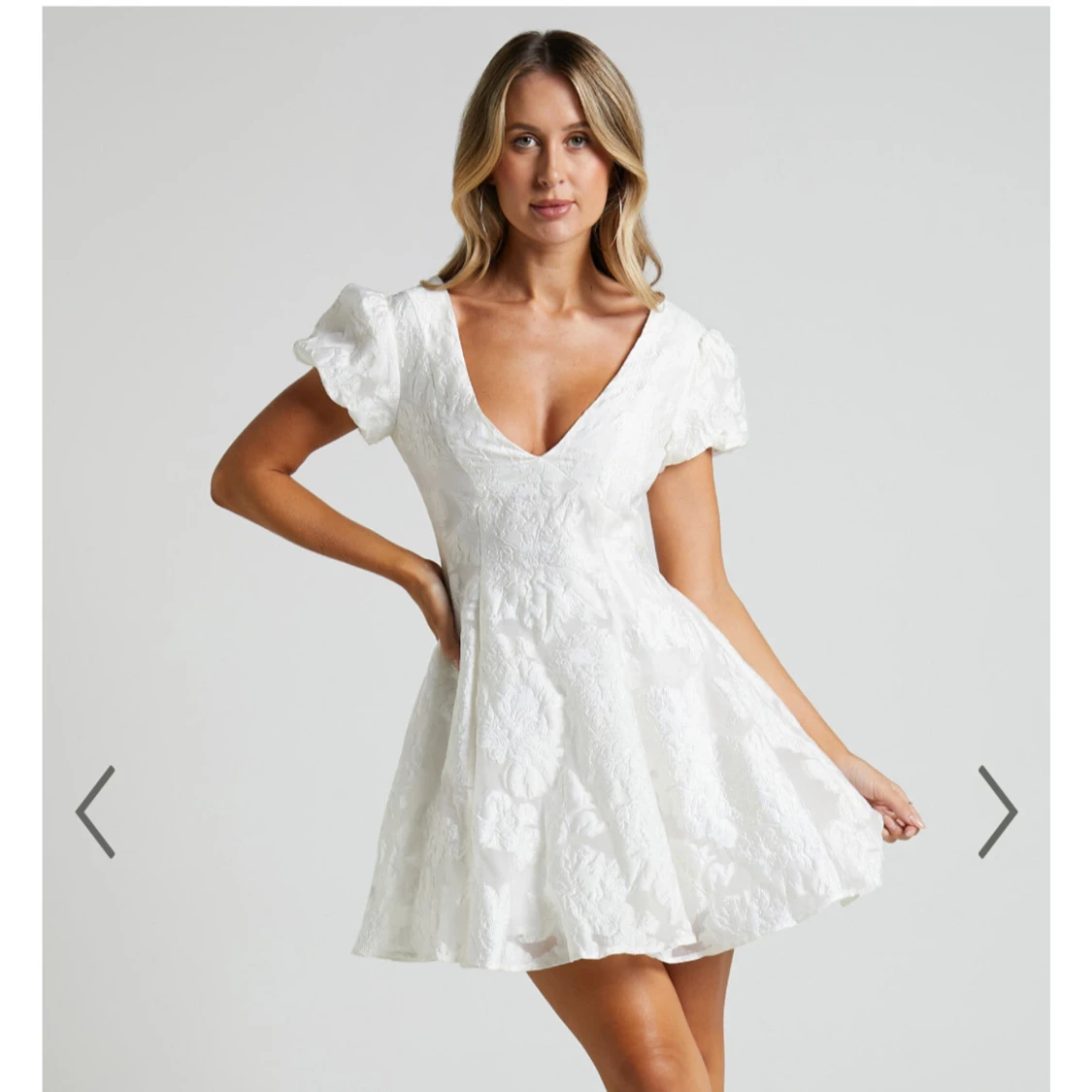 Superfin vit kortklänning med puffärmar och djup v-ringning. Helt ny med prislapp kvar. Säljer vidare då den är för stor 🥰💕priset kan diskuterats vid snabb affär