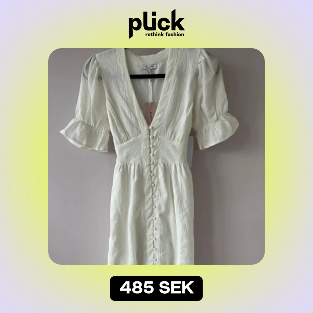 Jättefin vit klänning med knytdetalj baktill. Nyskick, endast testad 2 gånger och alla lappar är kvar:) Köpt för 699kr på bubbleroom.