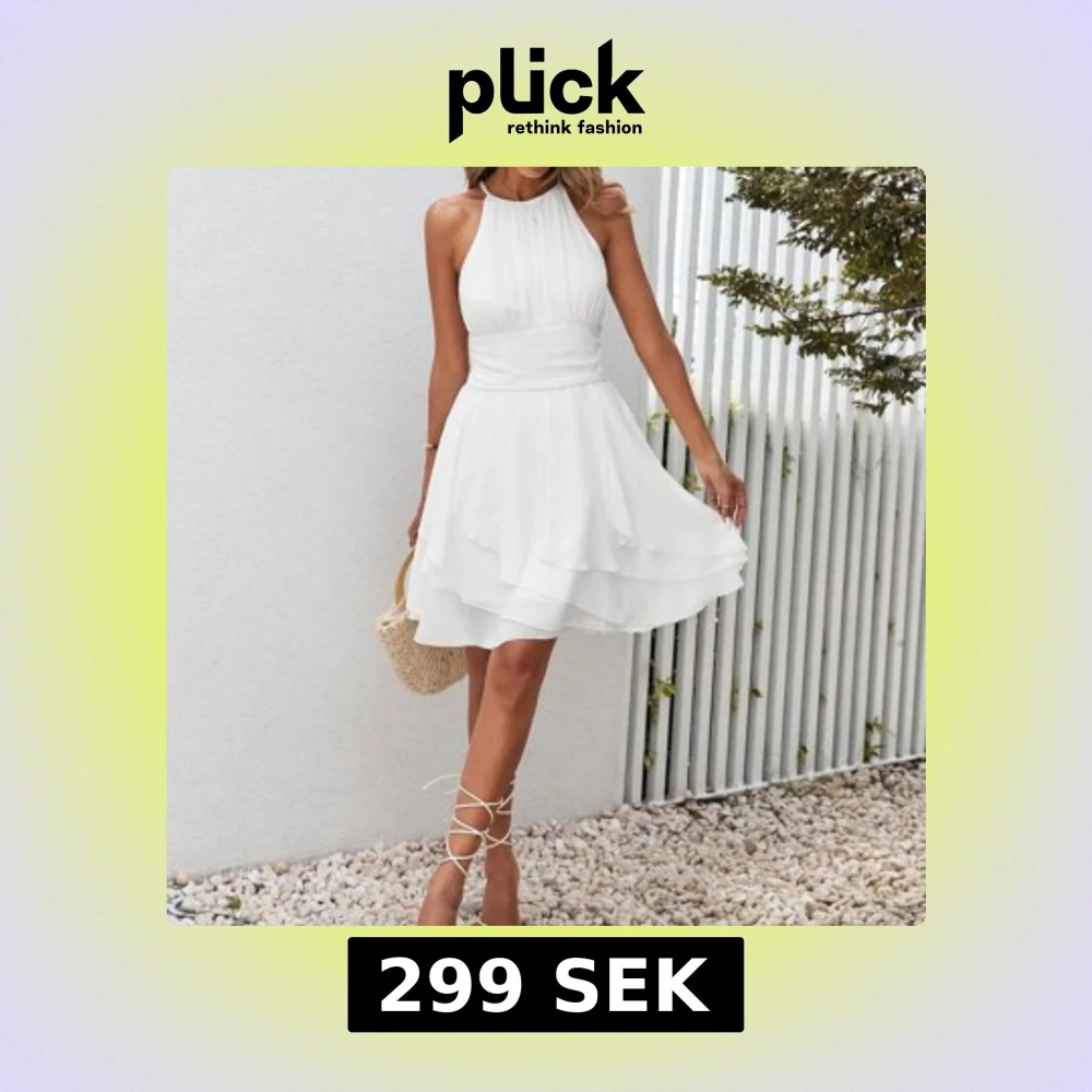Säljer en superfin vit klänning med volang. Skickar gärna fler bilder om de önskas, säljer då jag hittat en annan studentklänning💕 den är i M men funkar även som S, pris kan diskuteras✨