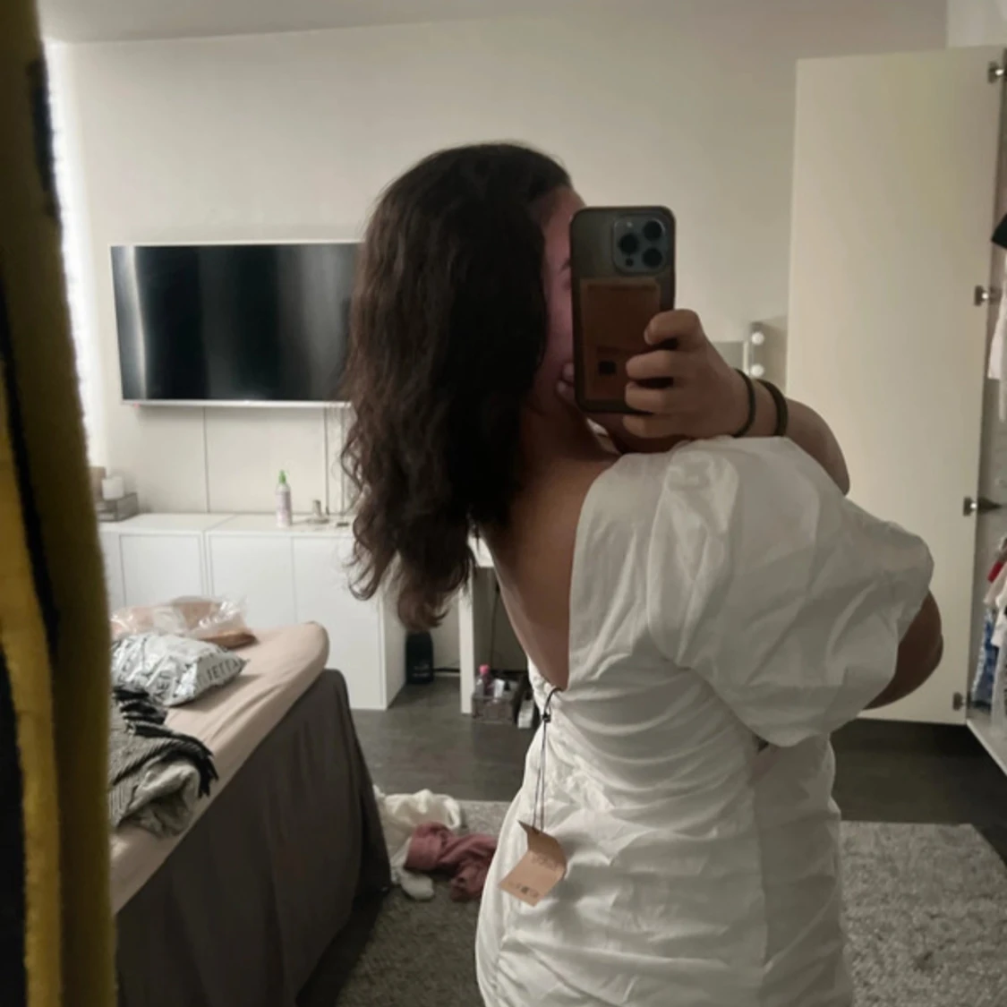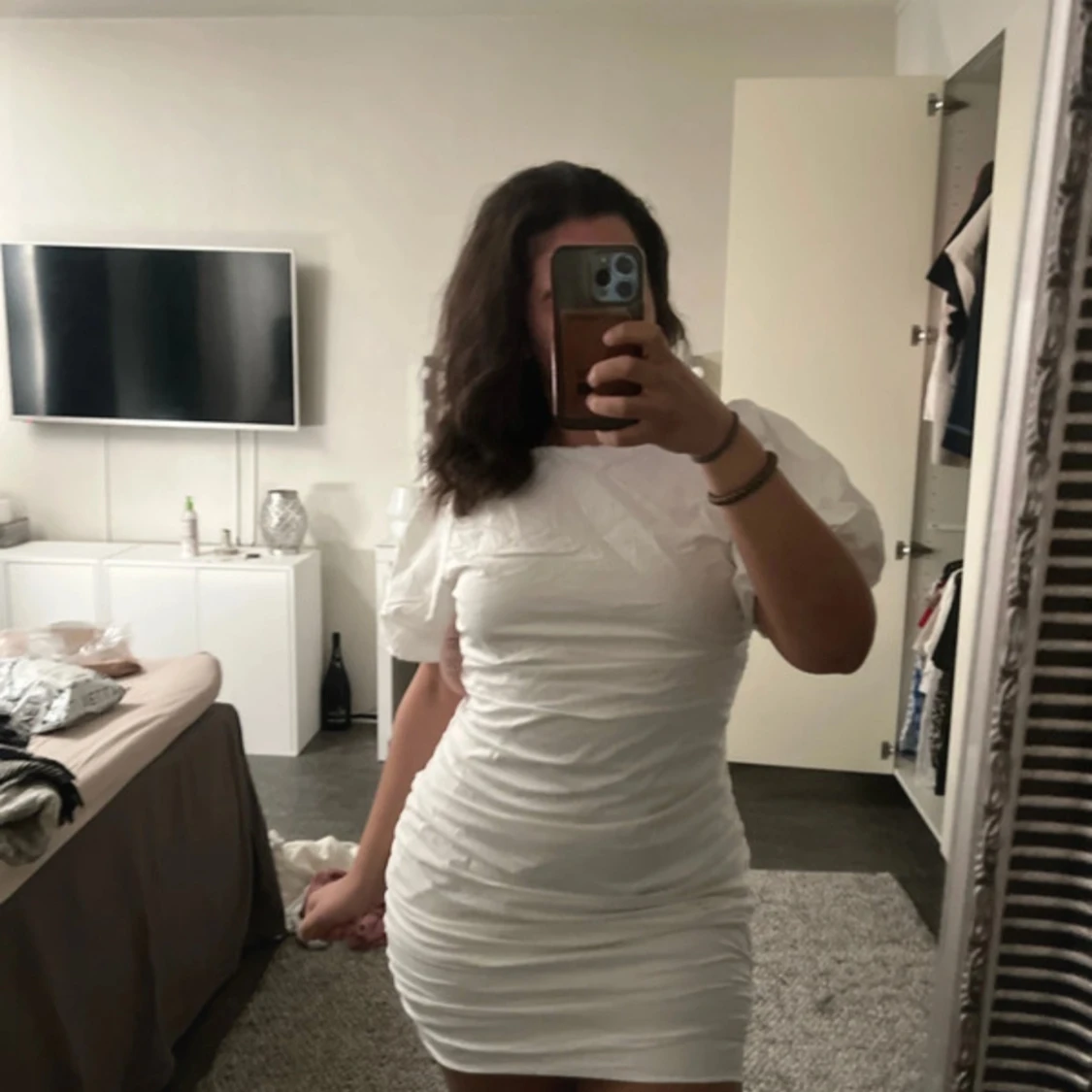 Säljer en stilren vit kort klänning med puffärmar. Klänningen har en tight passform och är perfekt för sommarens alla tillfällen. Den är tillverkad i ett lätt och bekvämt material som ger en smickrande silhuett. Men också perfekt inför studenten