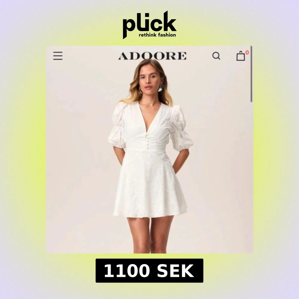 Superfin vit klänning från Adoore med puffärmar, v-ringning och knappar framtill. Endast använd en gång på min student⭐️ pris kan diskuteras