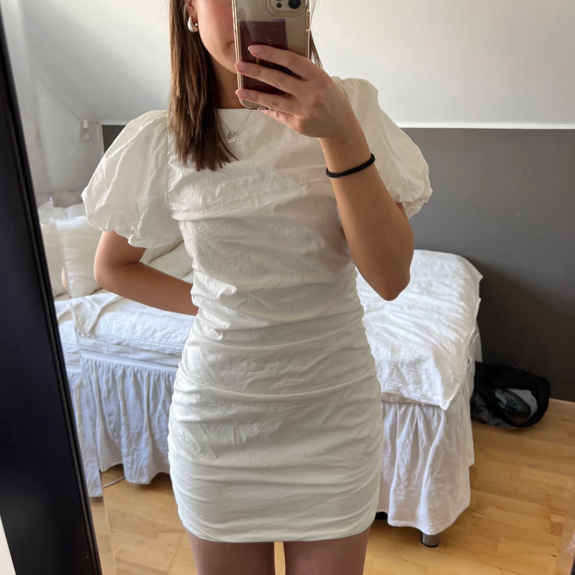 Snygg vit kortklänning med puffiga kortärmar och knytning i ryggen. Perfekt för studenten!! (Bilderna är lånade, skriv för fler bilder)❤️