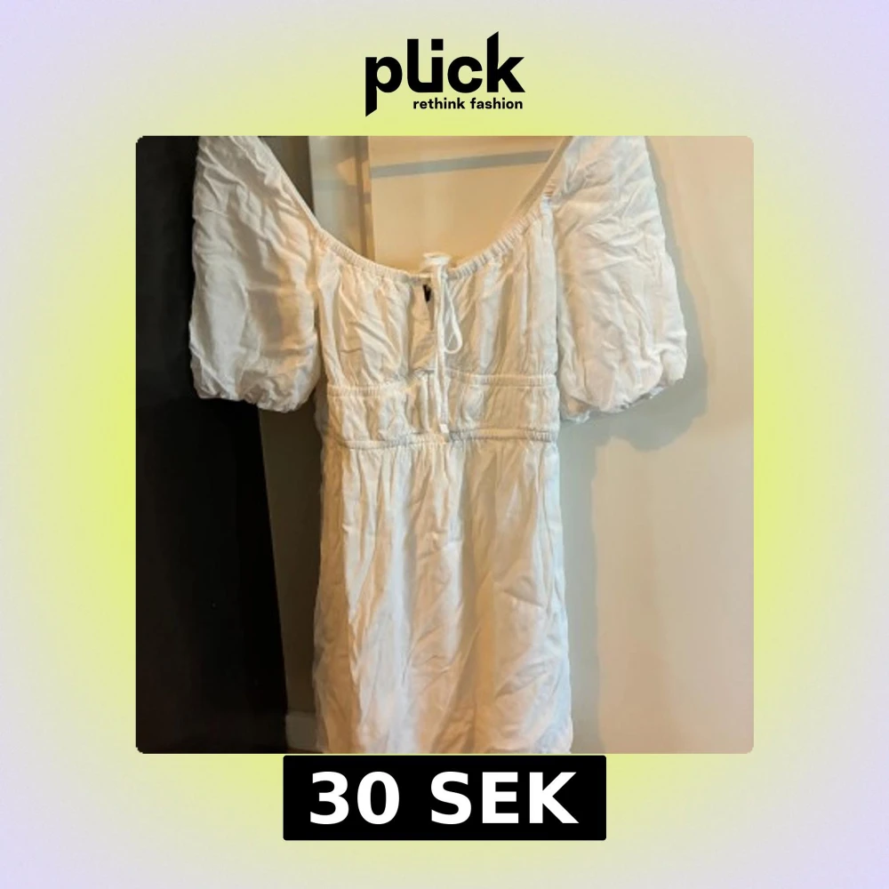 Superfin vit kortklänning med puffiga kortärmar och söt snörning framtill. Klänningen har en luftig passform och är perfekt för varma dagar eller till hösten med boots och skinnjacka.