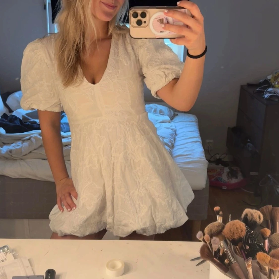 Superfin vit kortklänning. Säljer då den tyvärr sitter för tajt på mig. Perfekt inför student eller allmänt inför sommaren💕