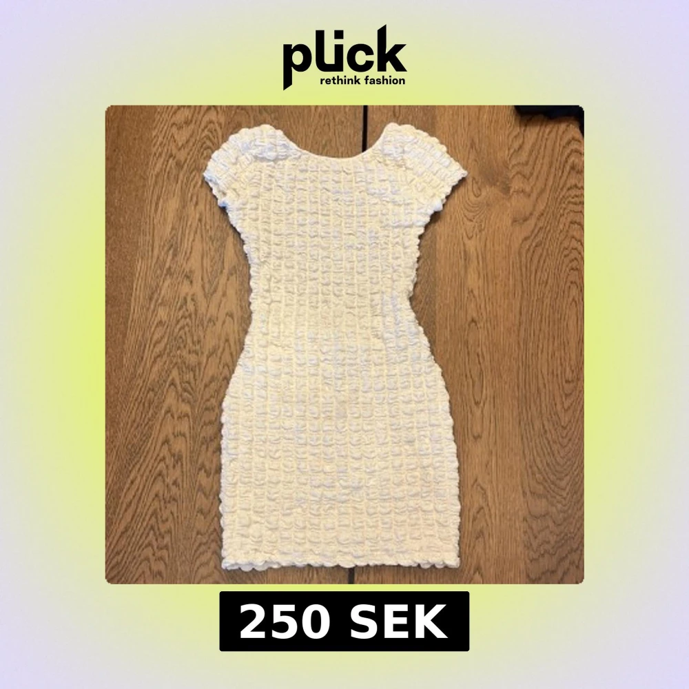 Supersöt vit kortklänning med unik strukturerad yta och korta ärmar. Klänningen har en tight passform och är perfekt för sommarens alla tillfällen. Klänningen har en djup öppen rygg!