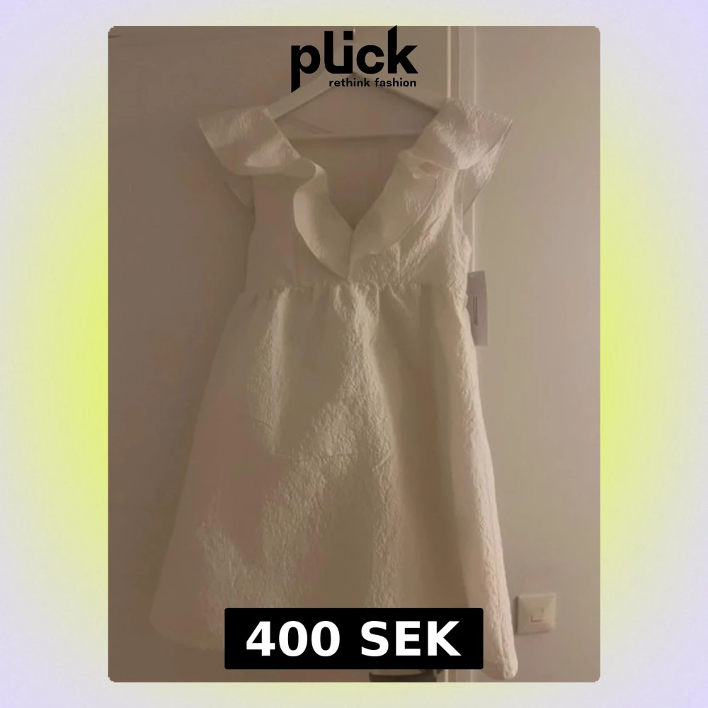 Supersöt vit kortklänning från Bubbleroom med v-ringning och bred volangkant upptill. Klänningen har ett strukturerat tyg med blommig brodyr och är ärmlös. Perfekt för sommarens alla tillfällen när du vill känna dig extra fin. Är helt ny med prislapp på och i storlek xs