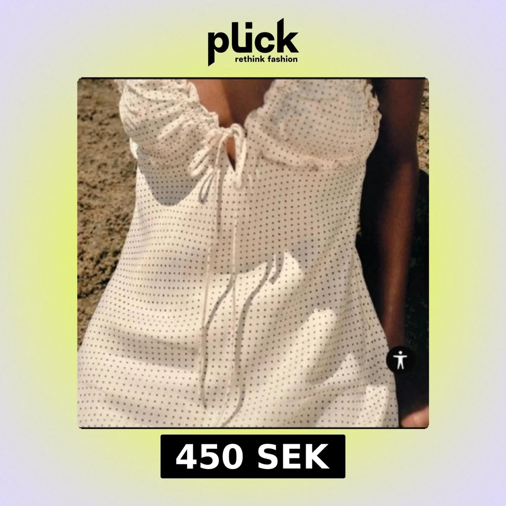 Superfin långklänning i vit med små svarta prickar och smala axelband. Söt snörningsdetalj framtill och lätt volang vid bysten. Har däremot ett söndrigt band som går att sjystera genom att knyta eller sy enkelt🤍🖤