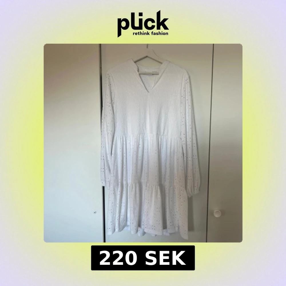 Säljer en vit långärmad klänning från vila med v-ringning och volangdetaljer. Klänningen har ett diskret broderat mönster och är perfekt för vår och sommar. Den är både stilren och bekväm. Passar perfekt till sommaren och även studenten🤍