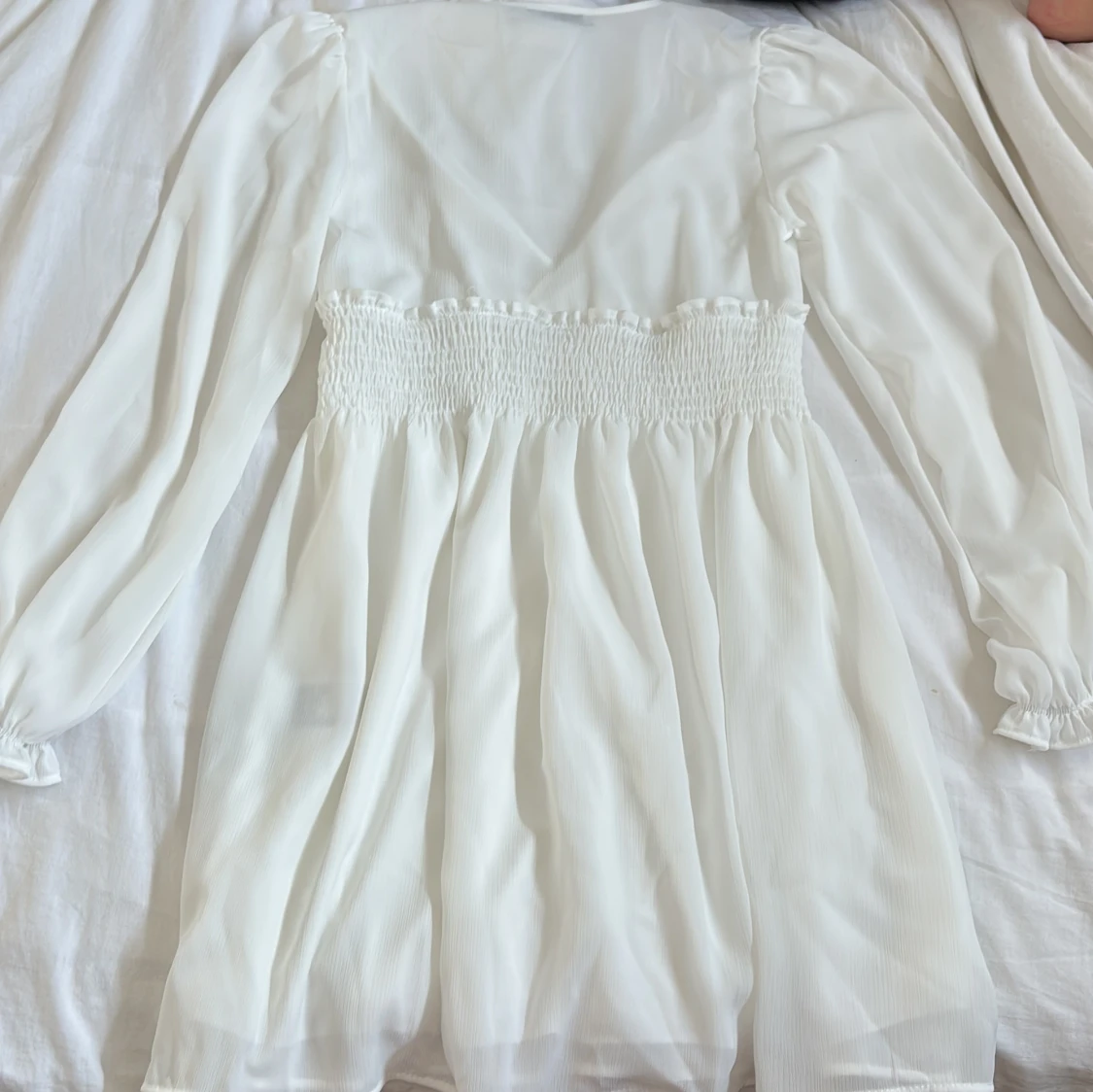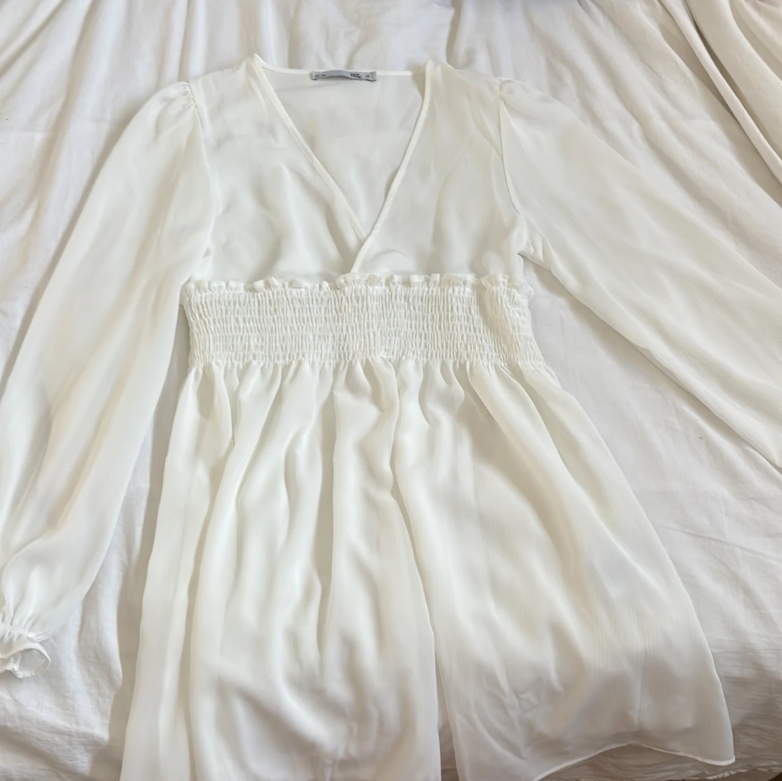 Vit v-ringad långärmad klänning ifrån Lager 157 i storlek XS. Helt ny utan prislapp, köpt för ett tag sen men endast testad och därför i mycket bra skick. Finns inte kvar på hemsidan.