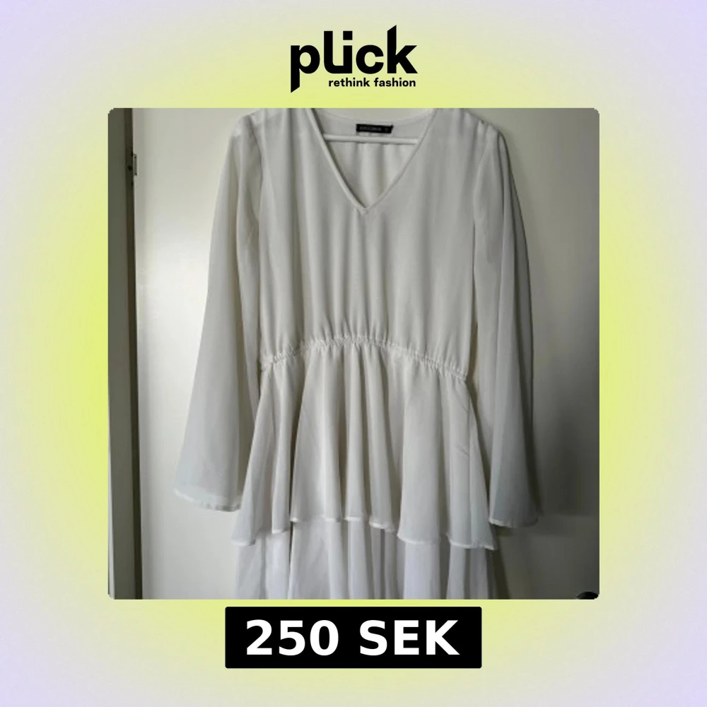 Säljer en vit långärmad klänning från Rut&Circle med v-ringning och volangdetaljer i midjan. Klänningen har en luftig och flowy passform, perfekt för sommarens tillfällen. Enkel och stilren design. Endast använd 1 gång!