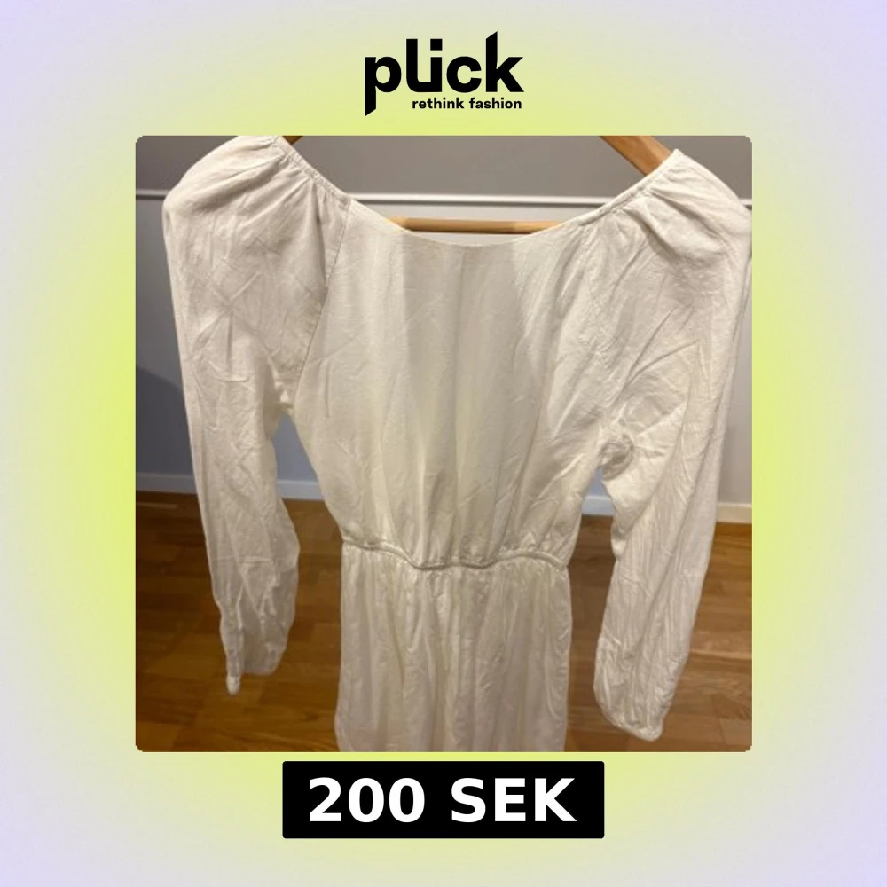 Superfin vit klänning med långa ärmar och markerad midja. Klänningen har en snygg öppen rygg och är gjord i ett mjukt bomullstyg.