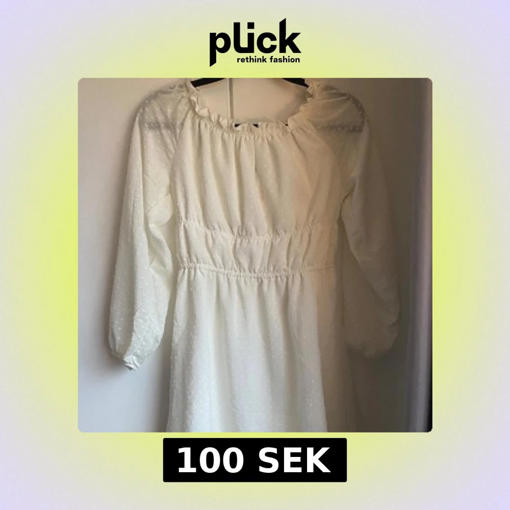 Säljer en söt vit klänning från H&M med lång ärm och diskret prickigt mönster i tyget. Perfekt för sommaren!