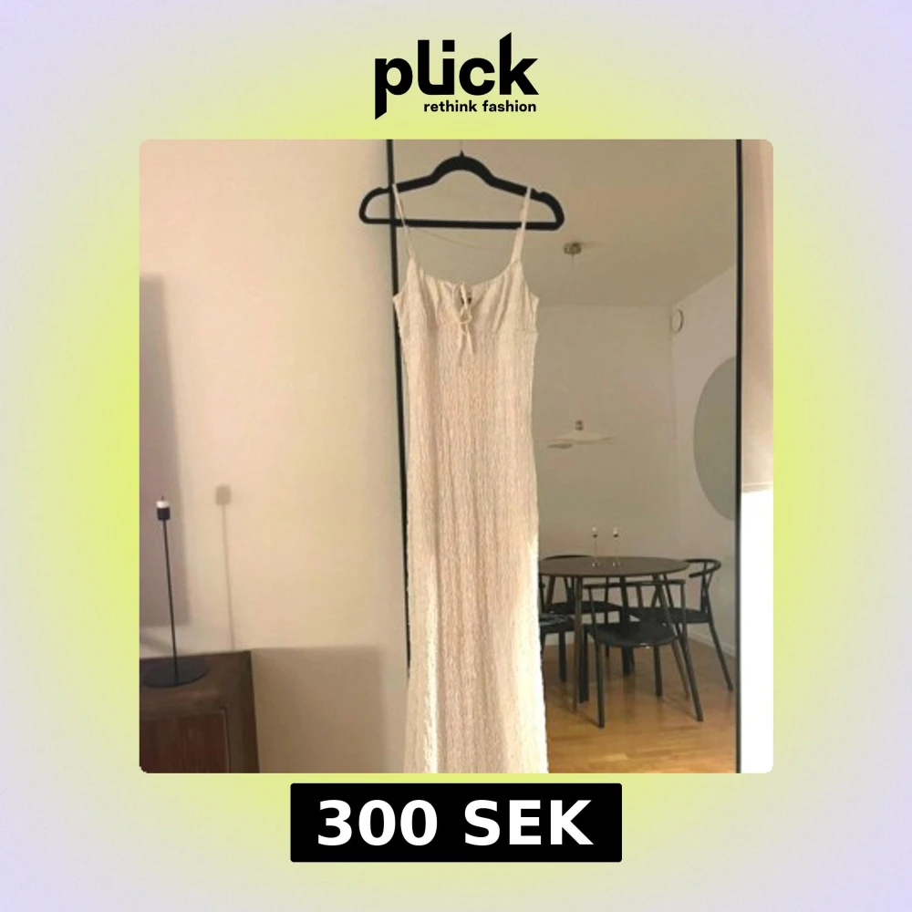 Elegant vit långklänning med smala axelband och knytning framtill. Slits i bak 🤍 perfekt till midsommar, examen eller studenten