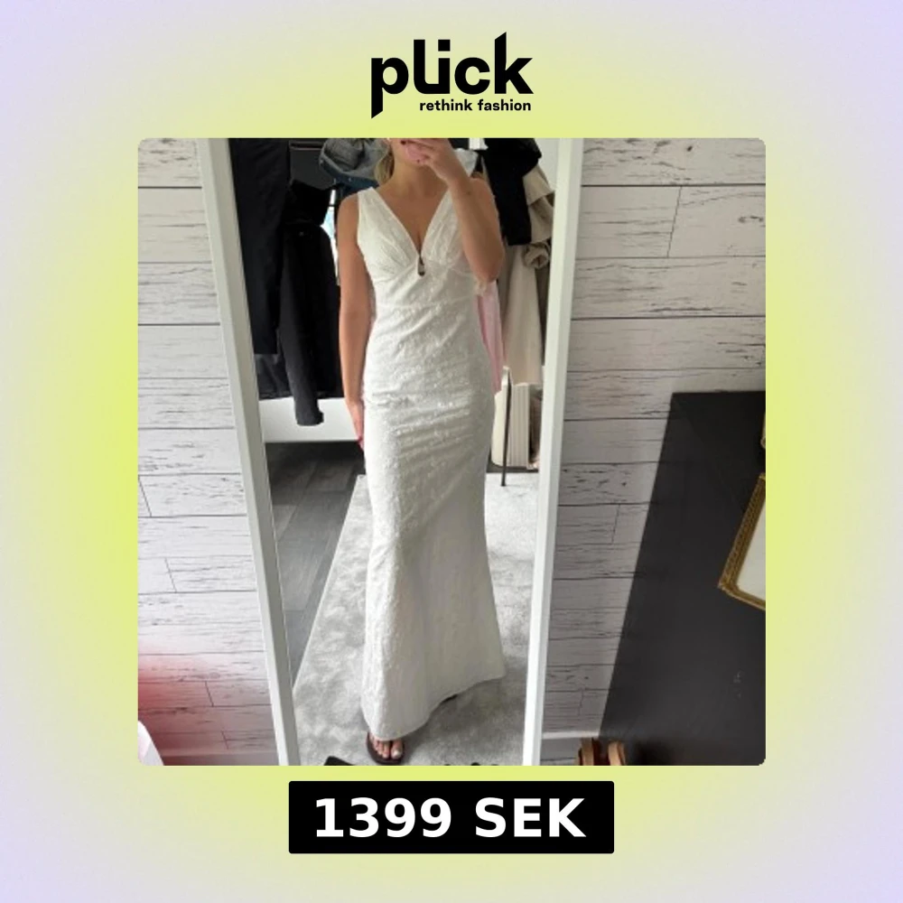 Superfin vit långklänning från Adoore med v-ringning fram och bak. Storlek 38 men har sytt in den i midjan så är som storlek 36. Super fint skick.