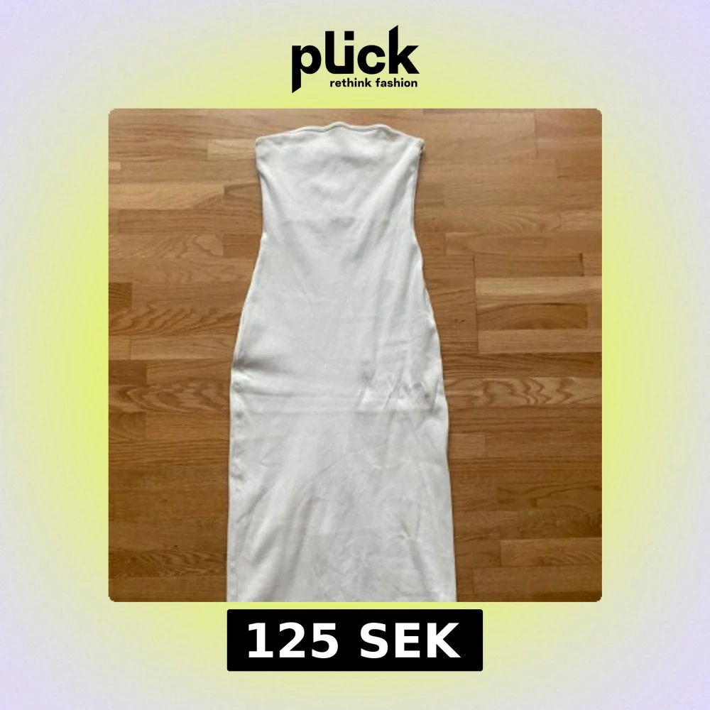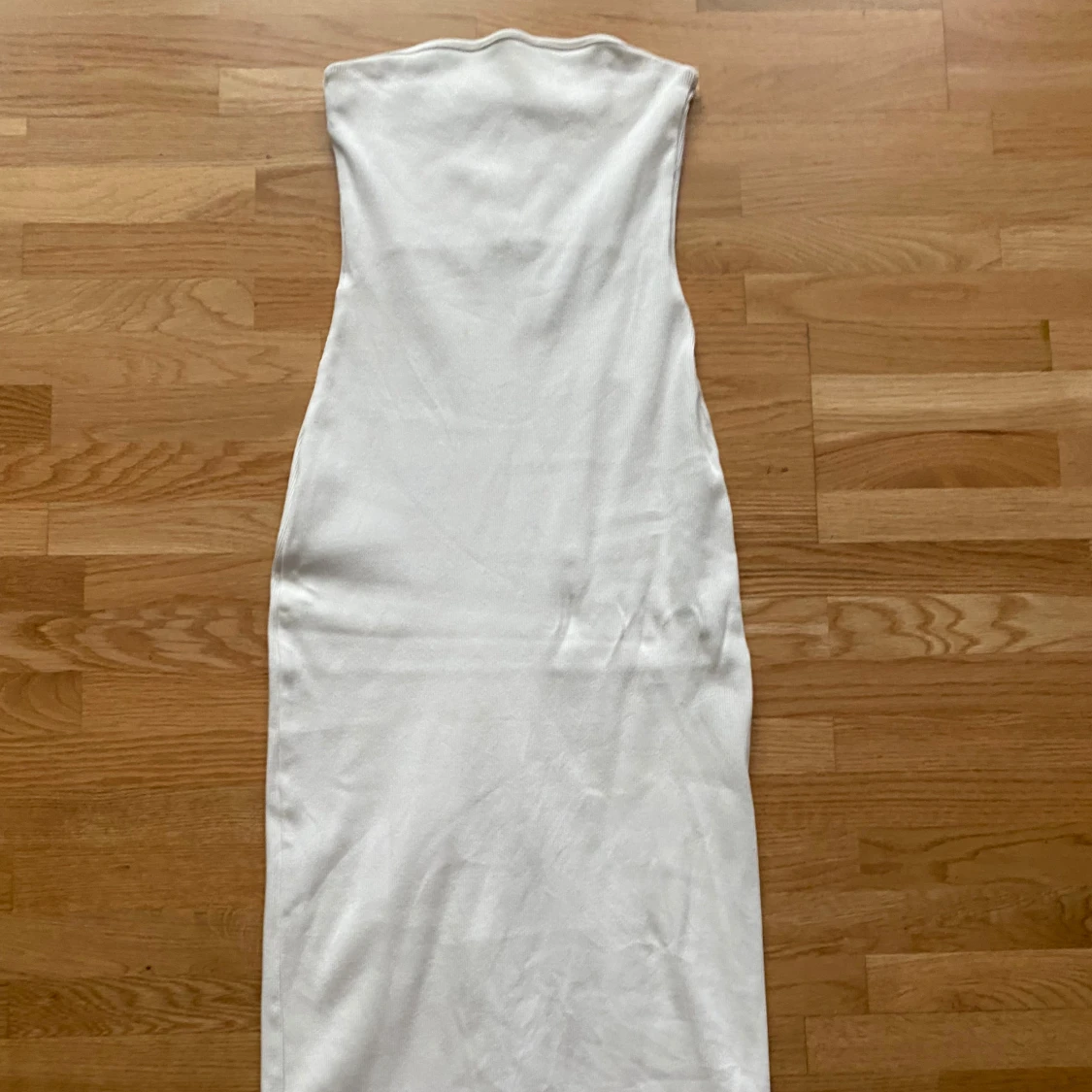 Säljer en vit, ärmlös långklänning från H&M Divided. Klänningen är figurnära med slits baktill och har en enkel, stilren design. Materialet är ribbat och stretchigt vilket ger en snygg passform. Perfekt för dig som gillar minimalistisk stil.