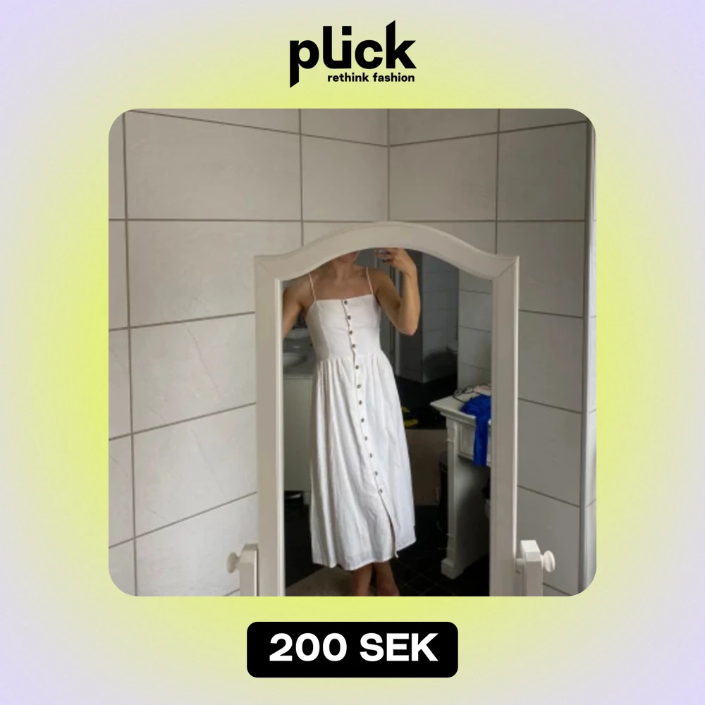 En vit långklänning från hm. Klänningen har ett undertyg och knappar längs hela klänningen. Jag är 170 cm.