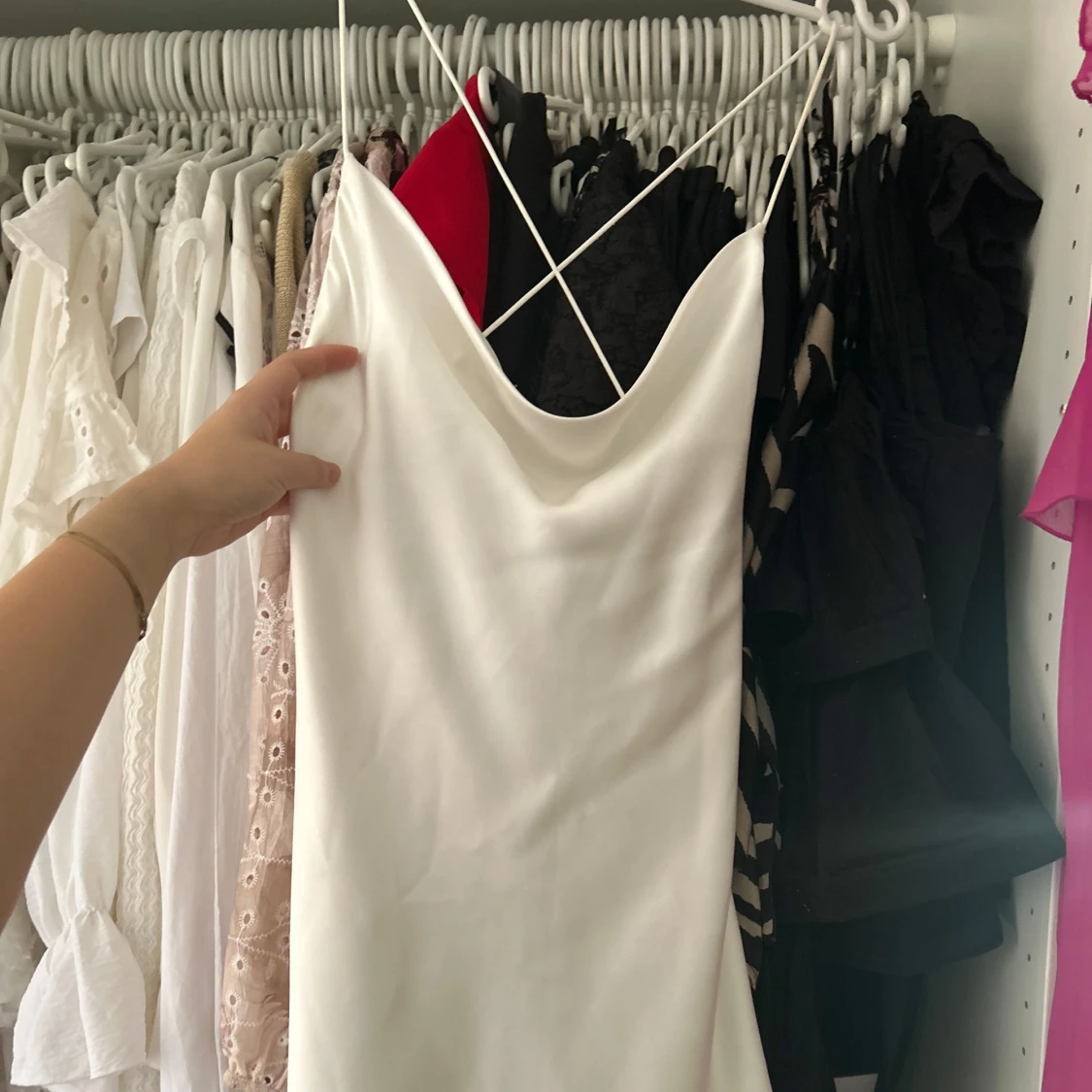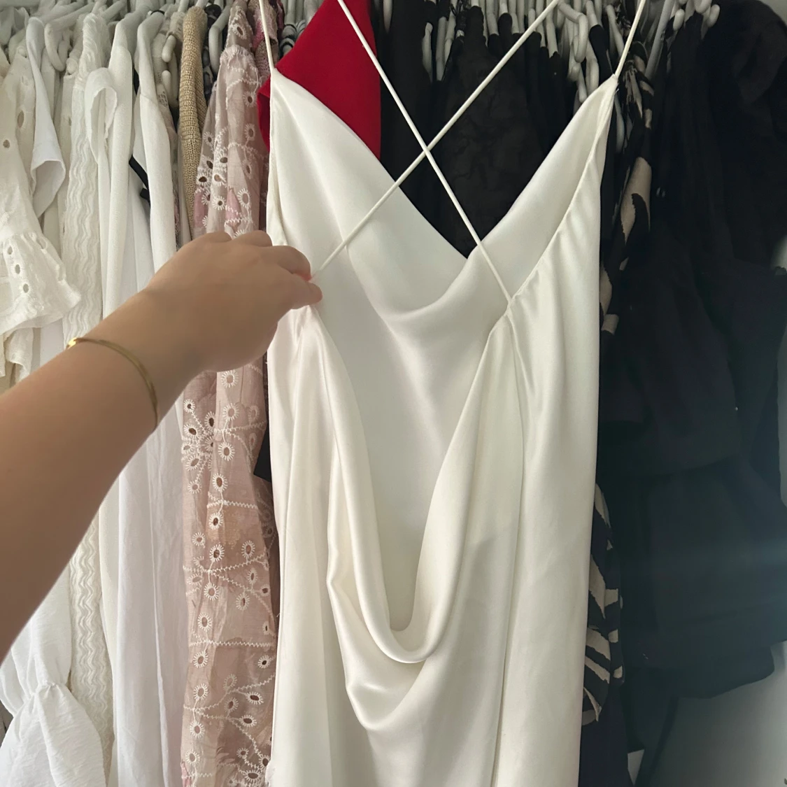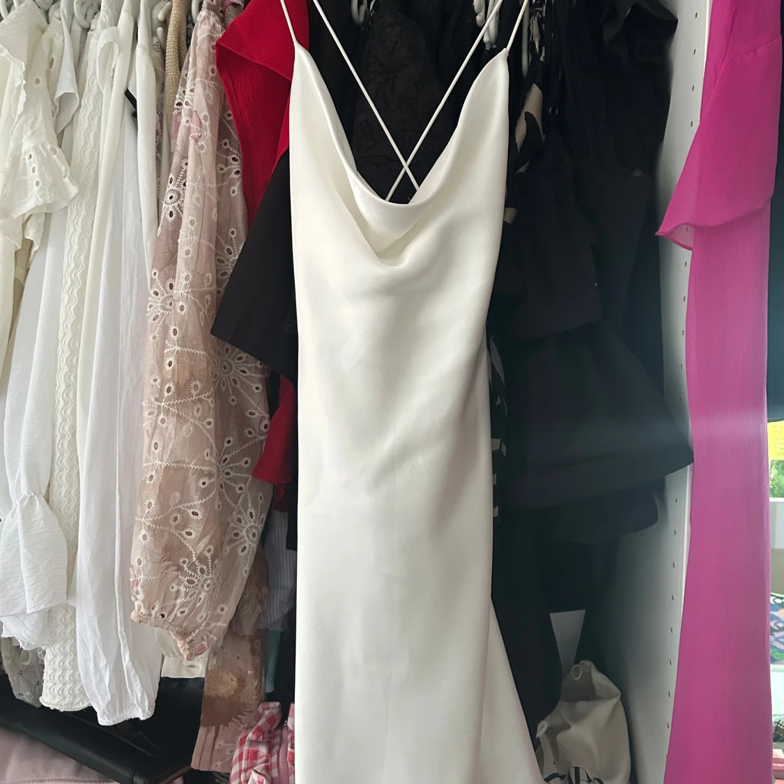 Super fin kort klänning med öppen, korsad rygg, köpte en på Vinted men tyvärr för liten för mig. Kolla bild finns ett hål i klänningen men syns ej så mycket när den är på! 🩷💕