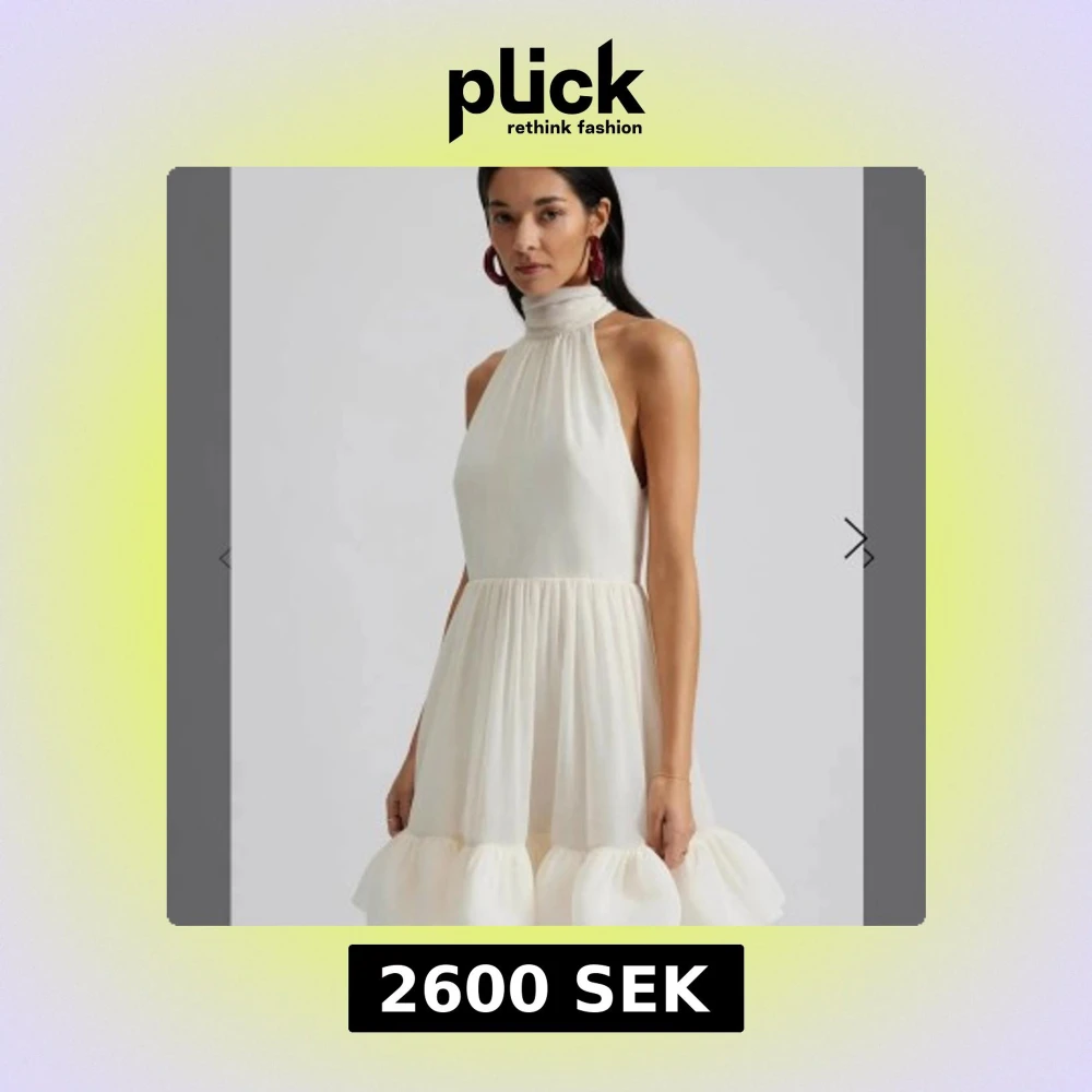 Aldrig använd supersöt vit miniklänning med halterneck och knyt i nacken. Perfekt för studenten! Originalpris 3000kr. Prislappen sitter kvar!