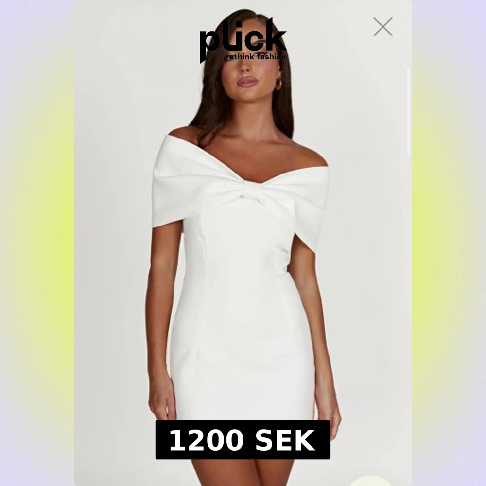 Vit off-shoulder klänning med figurnära passform och rosettdetalj framtill. Perfekt till student, fest eller bröllop. Endast provad! Säljes då den var för liten och ej går att returnera. Nypris 1700kr. (pris går att diskutera🫶🏻)